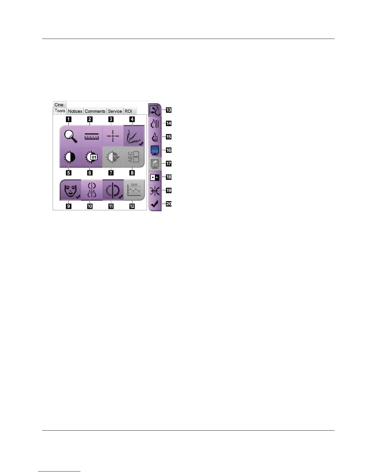 The Tools tab in the Procedure screen provides the image review tools. A check mark