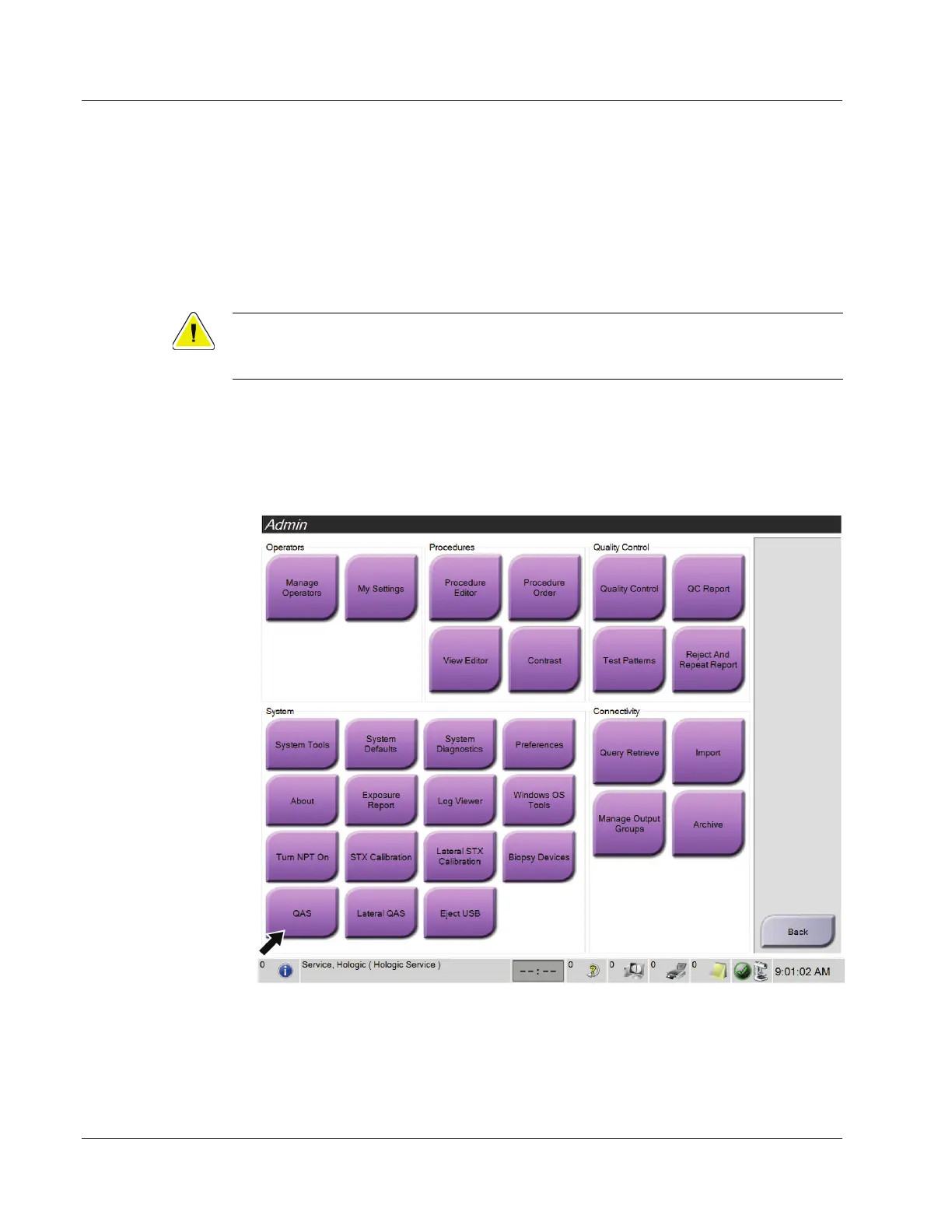 1. On the Acquisition Workstation, from the Select Patient screen, select the Admin
