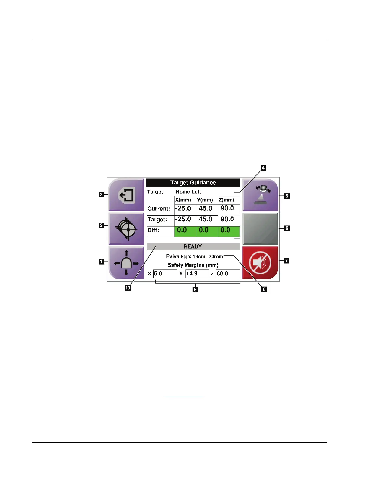 The buttons in the Target Guidance screen allow the user to go to the previous screen