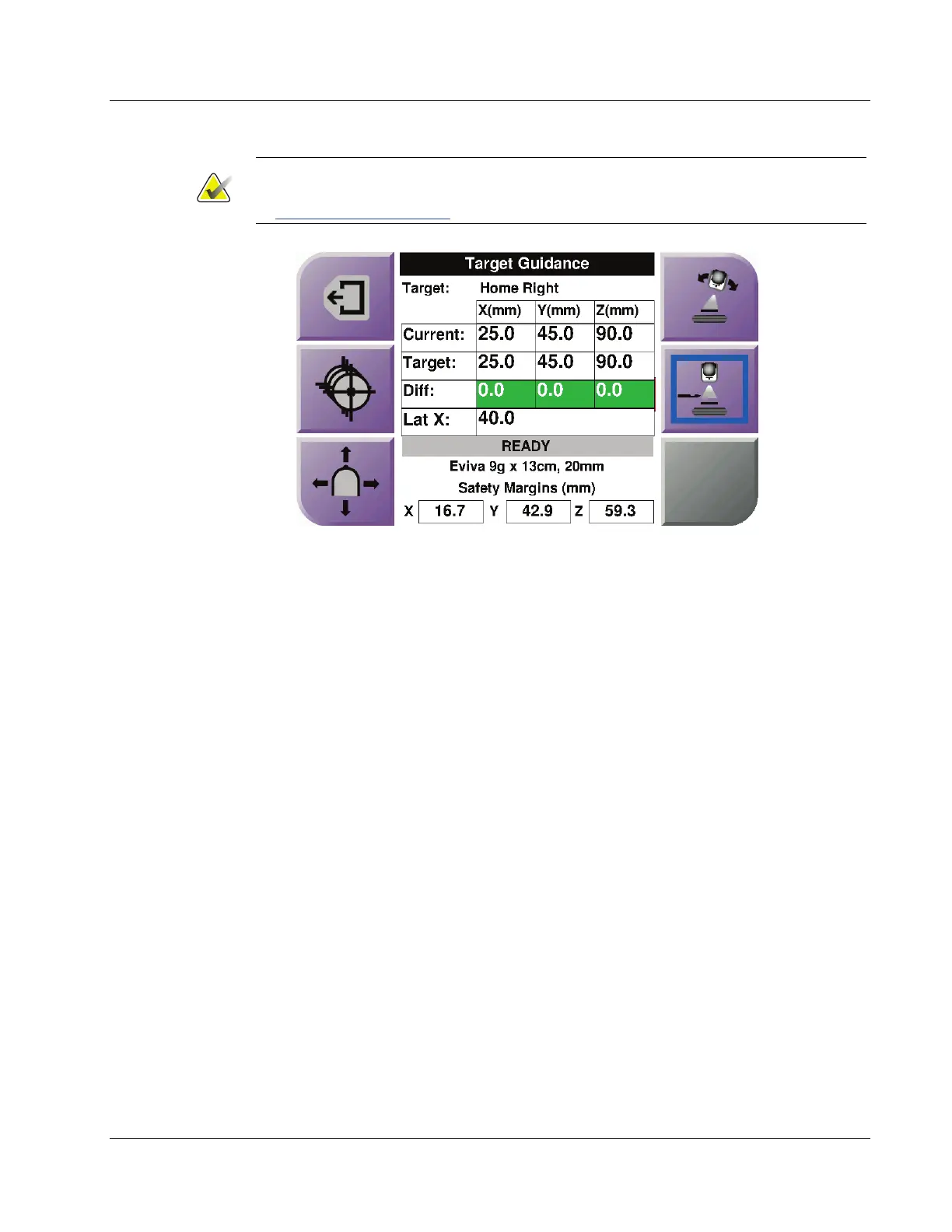 When the Lateral Arm is installed, the Target Guidance screen includes a field for the Lat