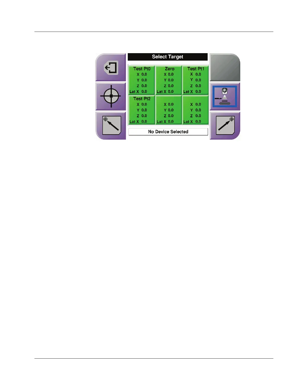 When the Lateral Arm is installed, the target coordinate icons on the Select Target screen
