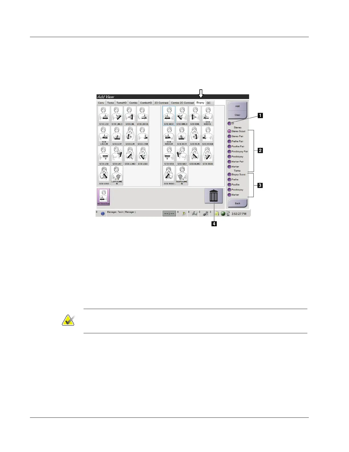 The Biopsy Stereo and Tomosynthesis View Modifiers show only when the system has