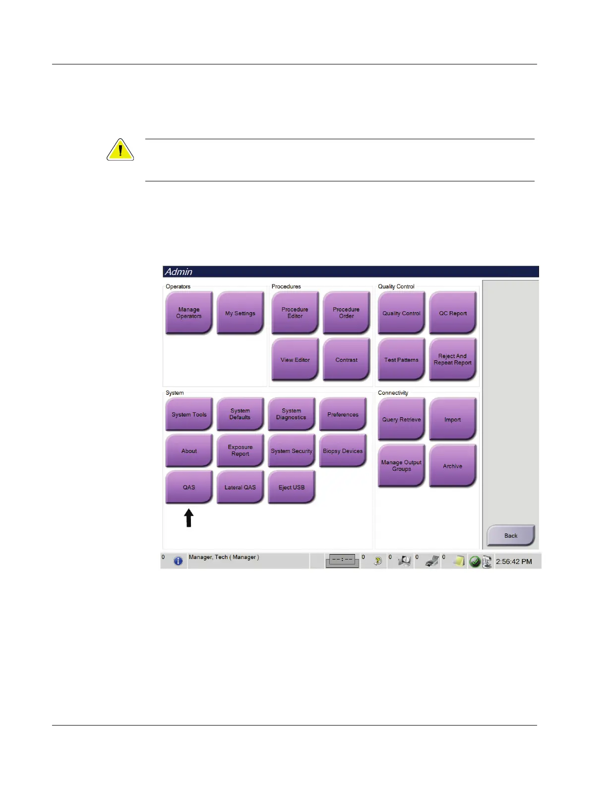 3. On the Admin screen, select the QAS button.