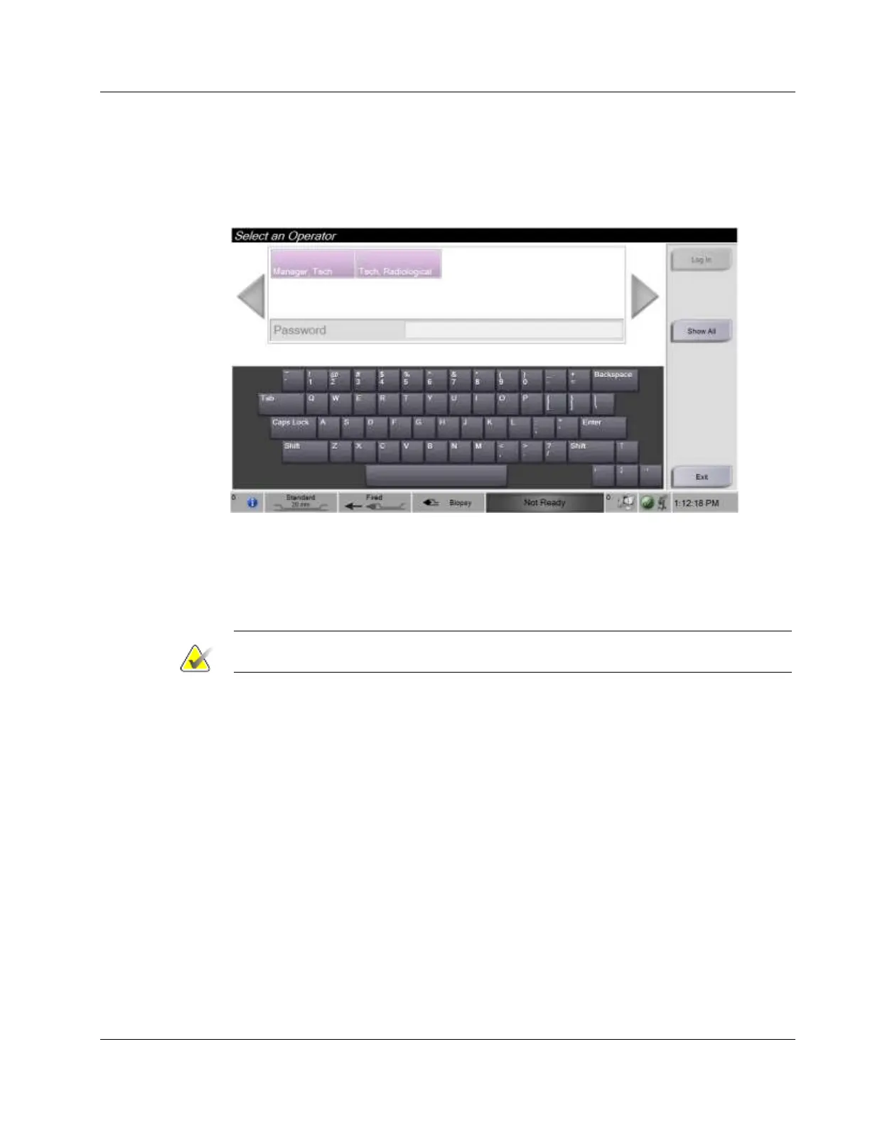 The Select an Operator screen shows user names or user groups (such as the Manager