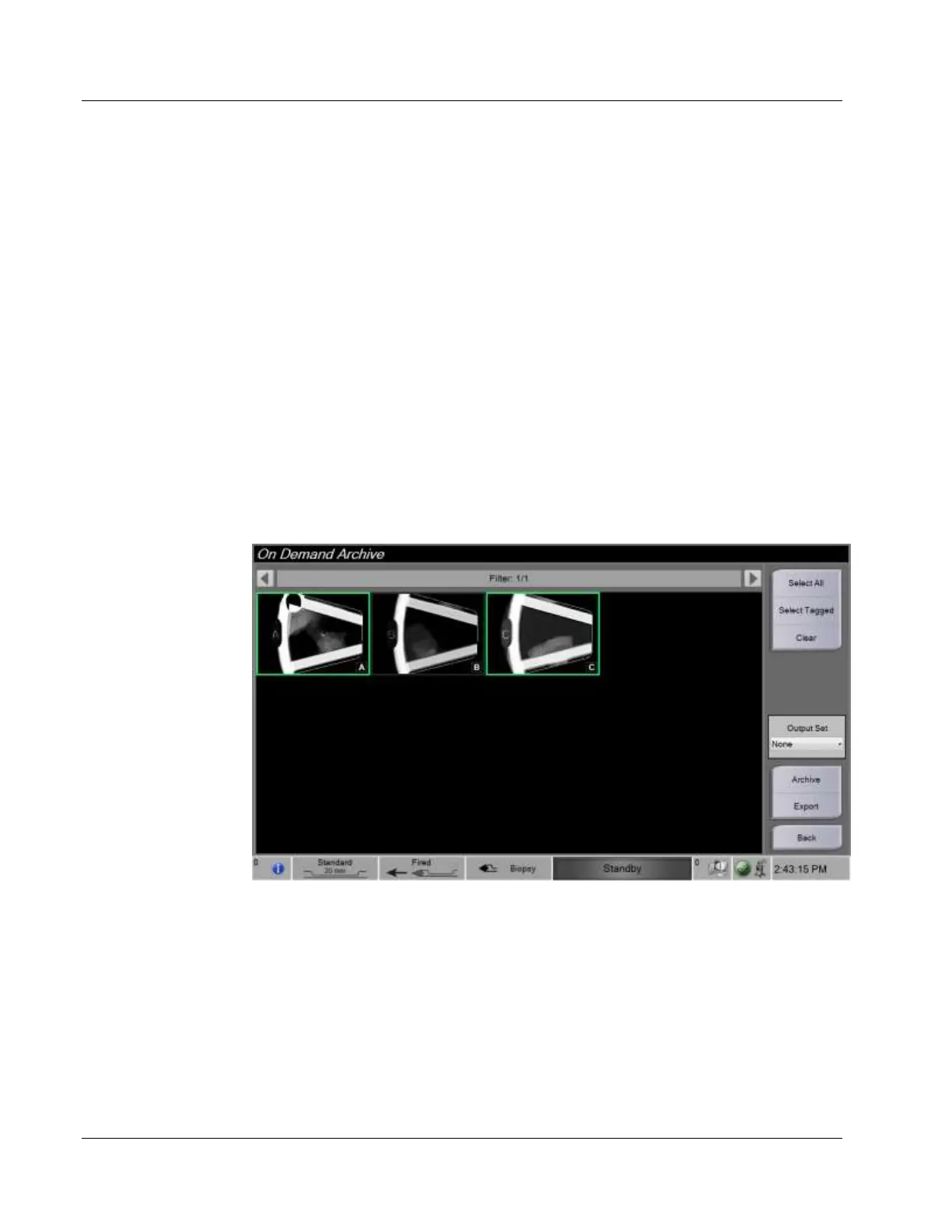 1. Select the Archive/Export button. The images from the current procedure appear in