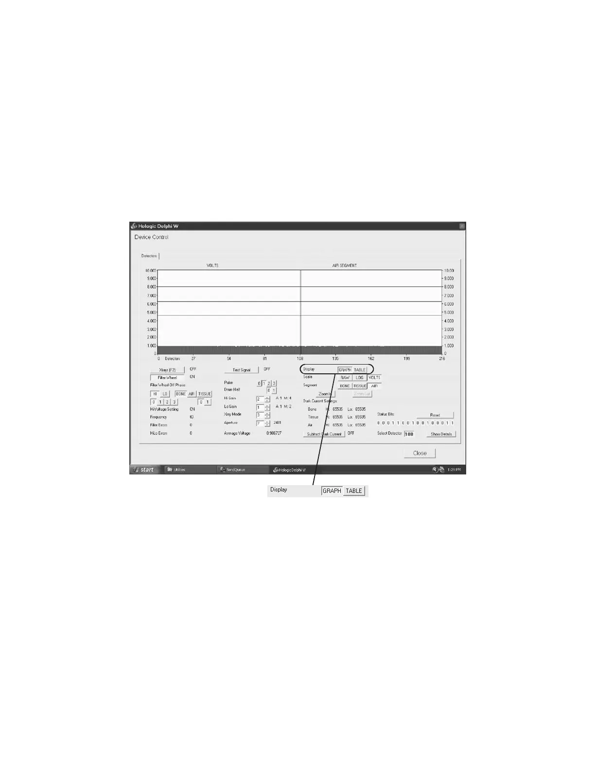 When the Graph button is active and the system is producing X-Rays, the data is
