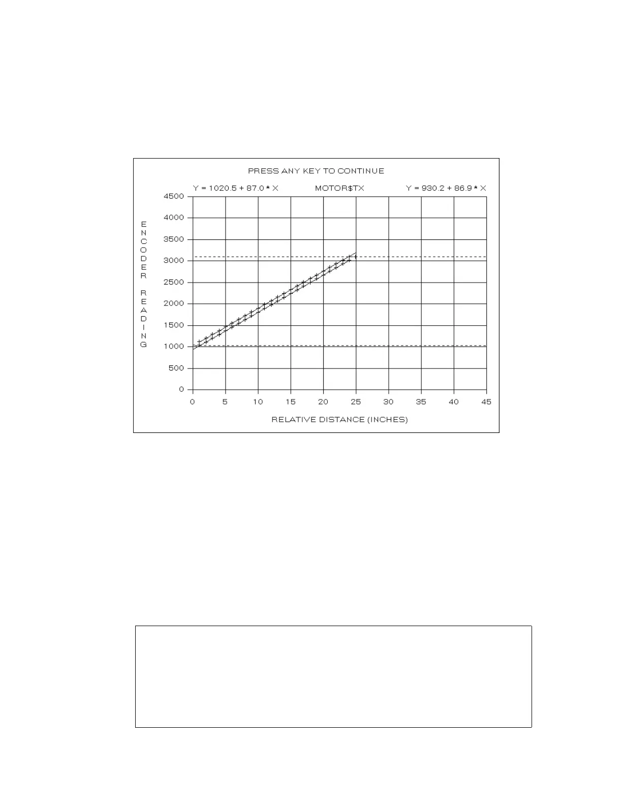 The program switches to graphics mode and draws the Encoder Vs Distance cal-