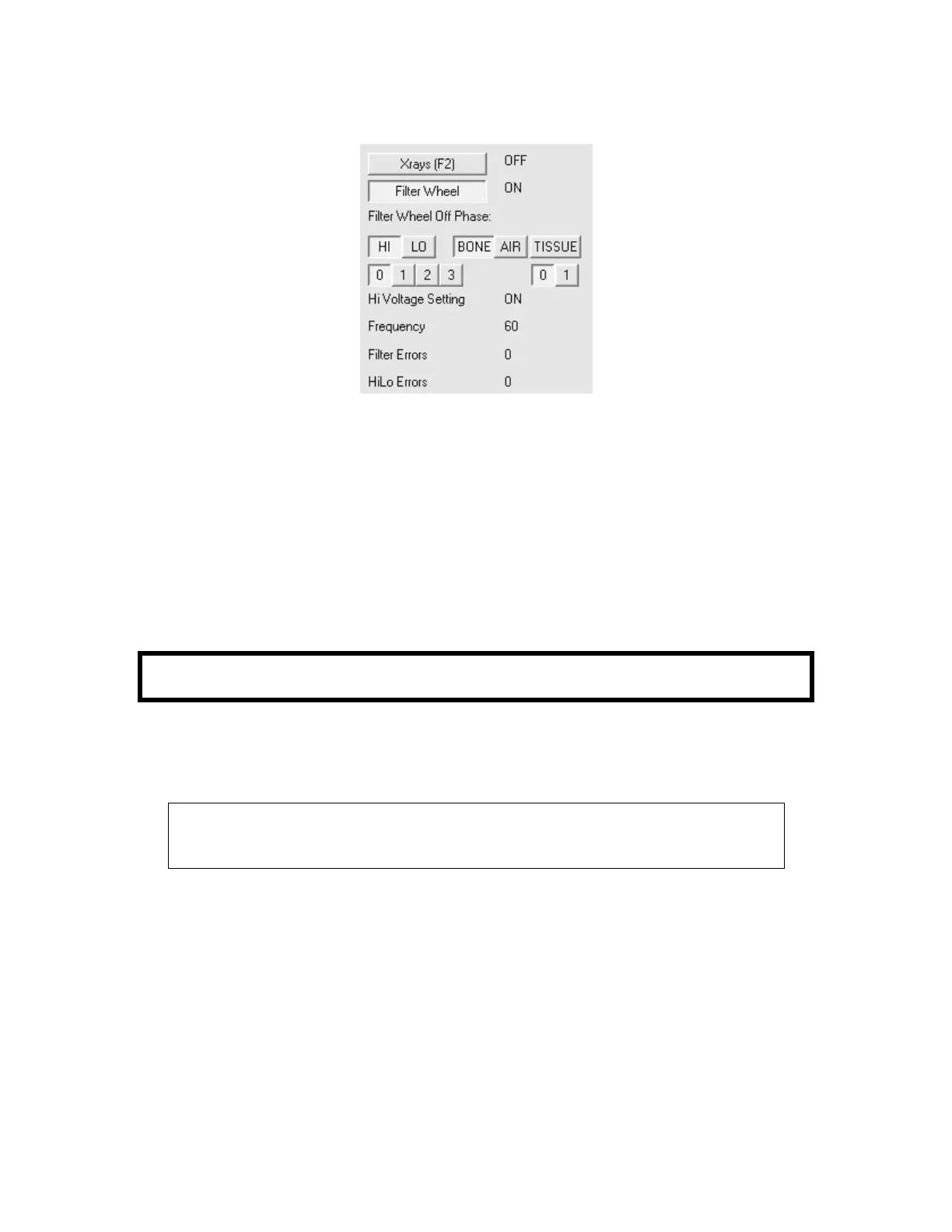 state of the Filter Wheel. These controls (HI/LO, BONE/AIR/TISSUE, 0/1/2/3 and 0/1)