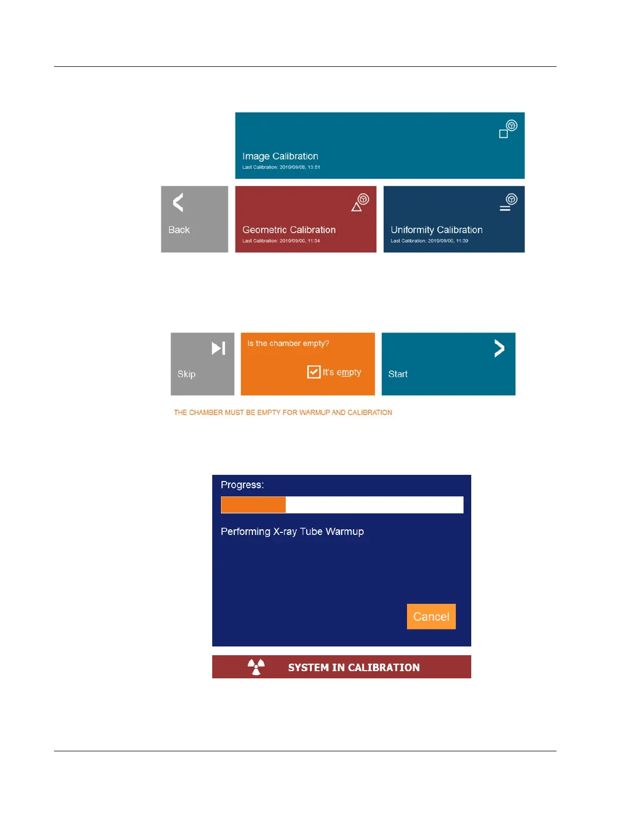 A Calibration Progress Window will open, and the system will begin Image Calibration.