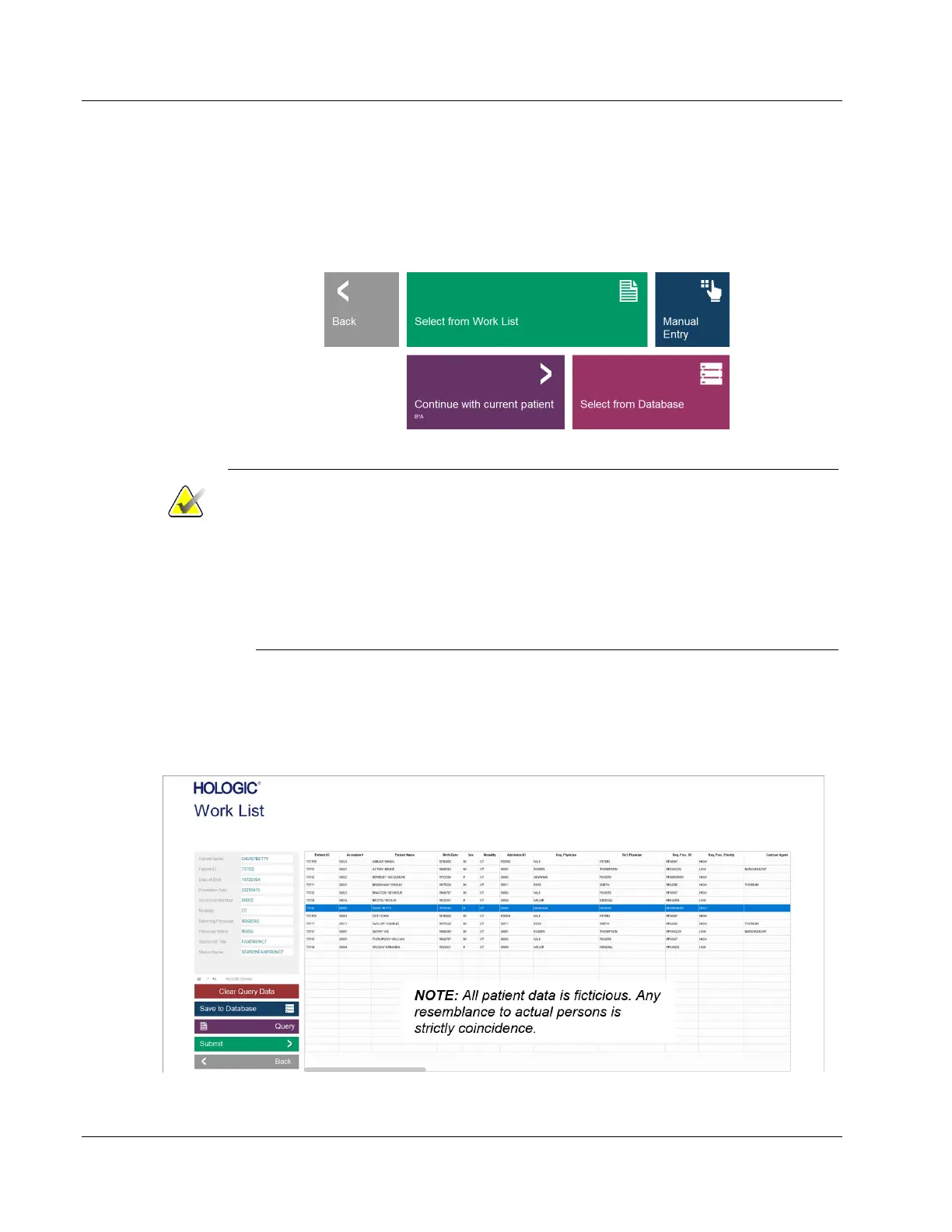 provides methods to enter patient data. If a Work List has been configured correctly, the