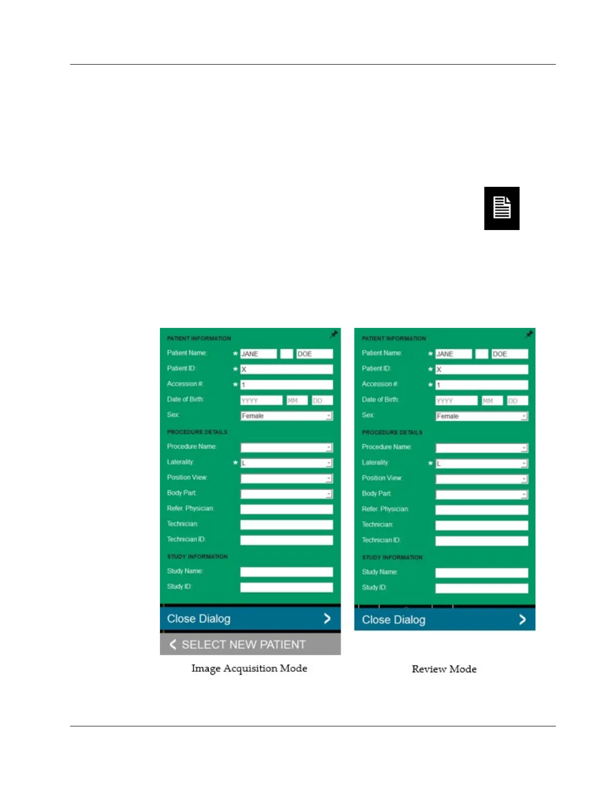 Figure 51: Patient Information Viewer – Image Acquisition and Review Modes