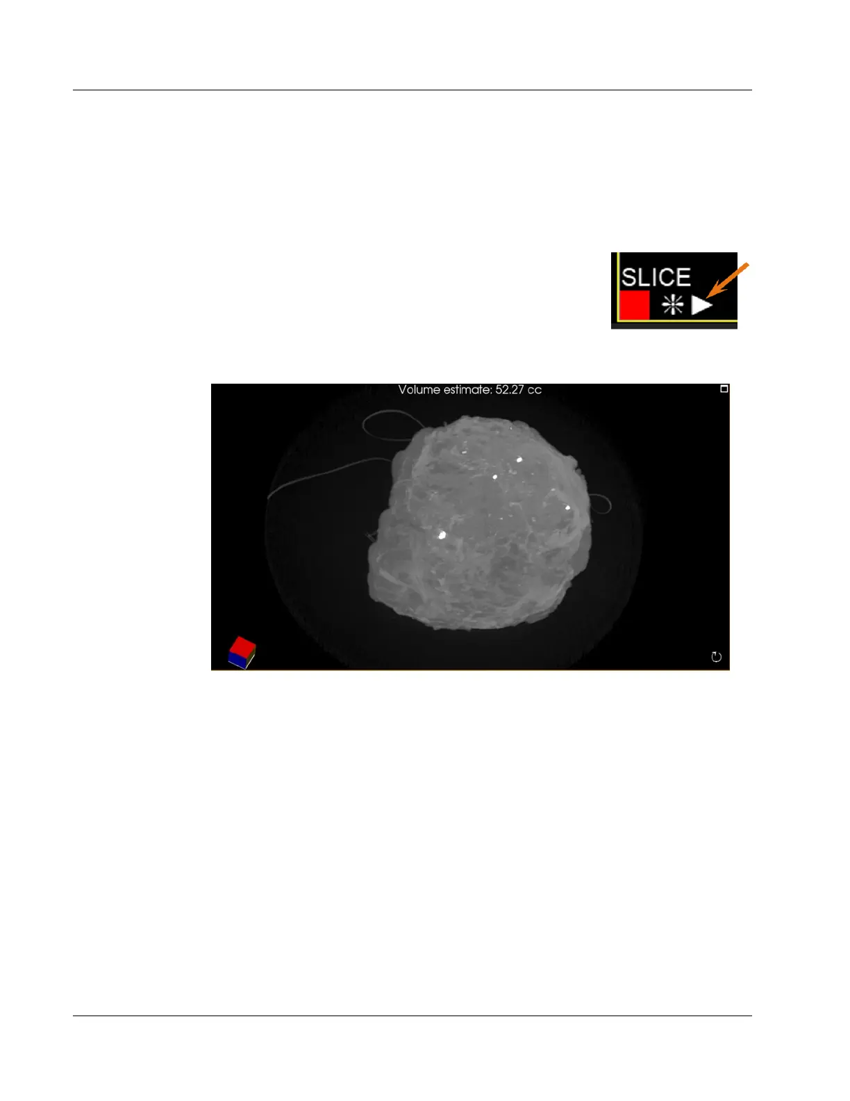 Estimated volume of the specimen is displayed at the top of this view in cubic