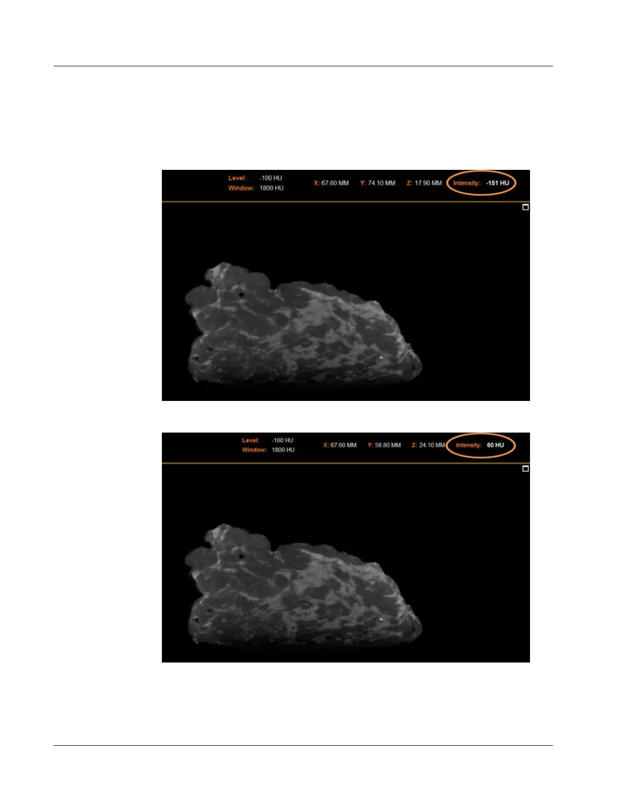 Figure 90: Hounsfield Units – Denser Fibrous Tissue