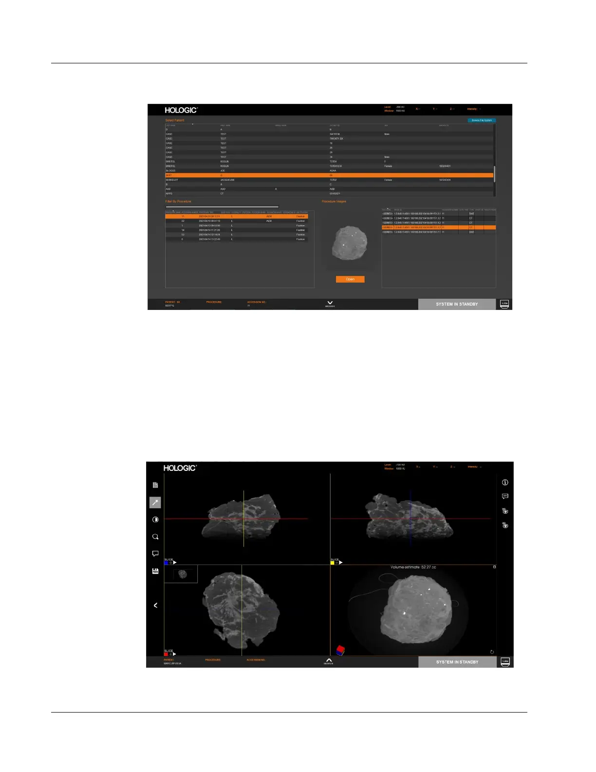 part of the screen will be empty. Selecting a patient opens the Procedure List in the lower