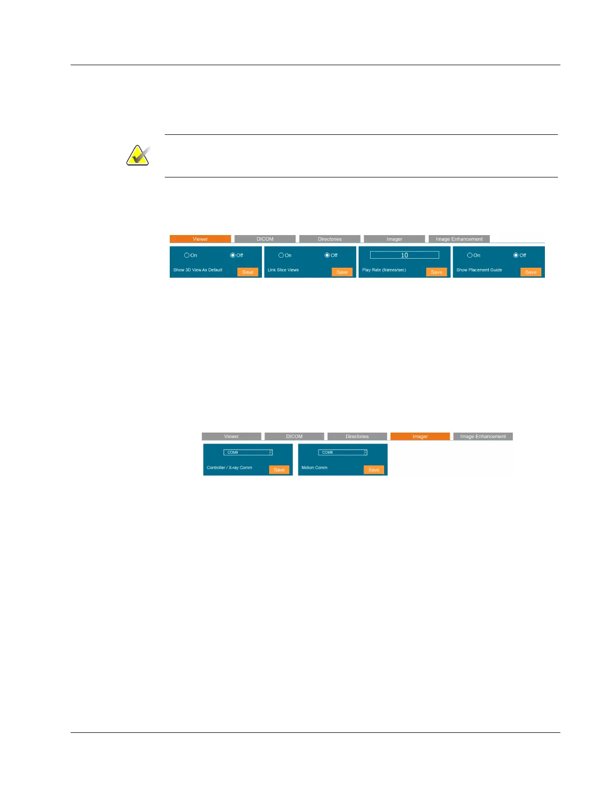 The 2 settings available to the user are the comm port settings for the x-ray subsystem