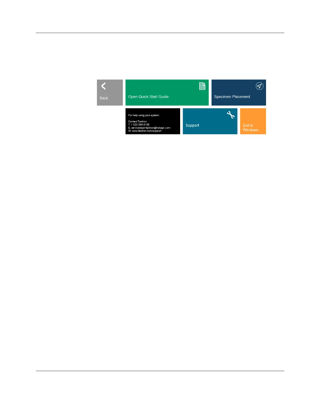 • The Support button provides information on contacting Hologic’s technical support