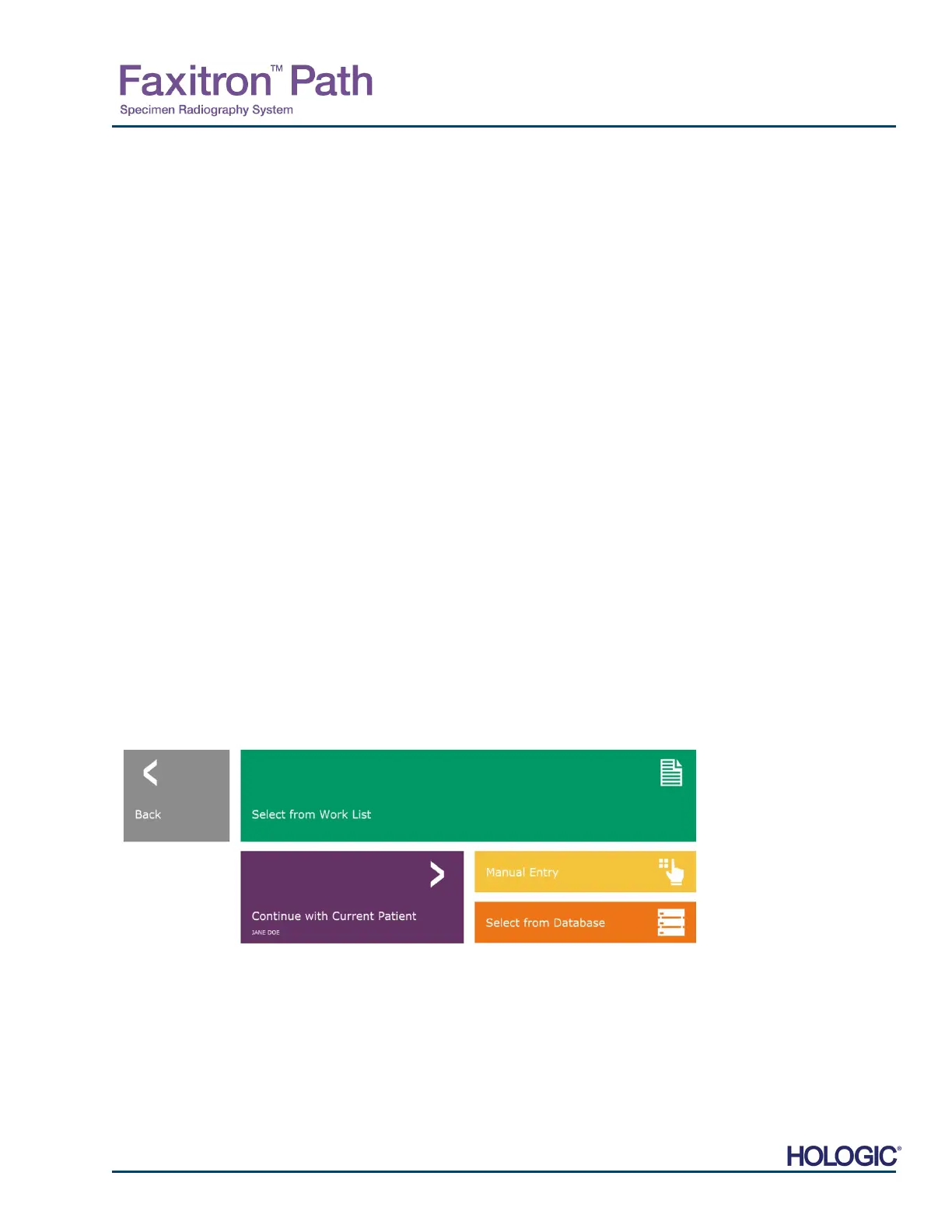 will be greyed out and only the Continue with current patient, Manual Entry, and Select