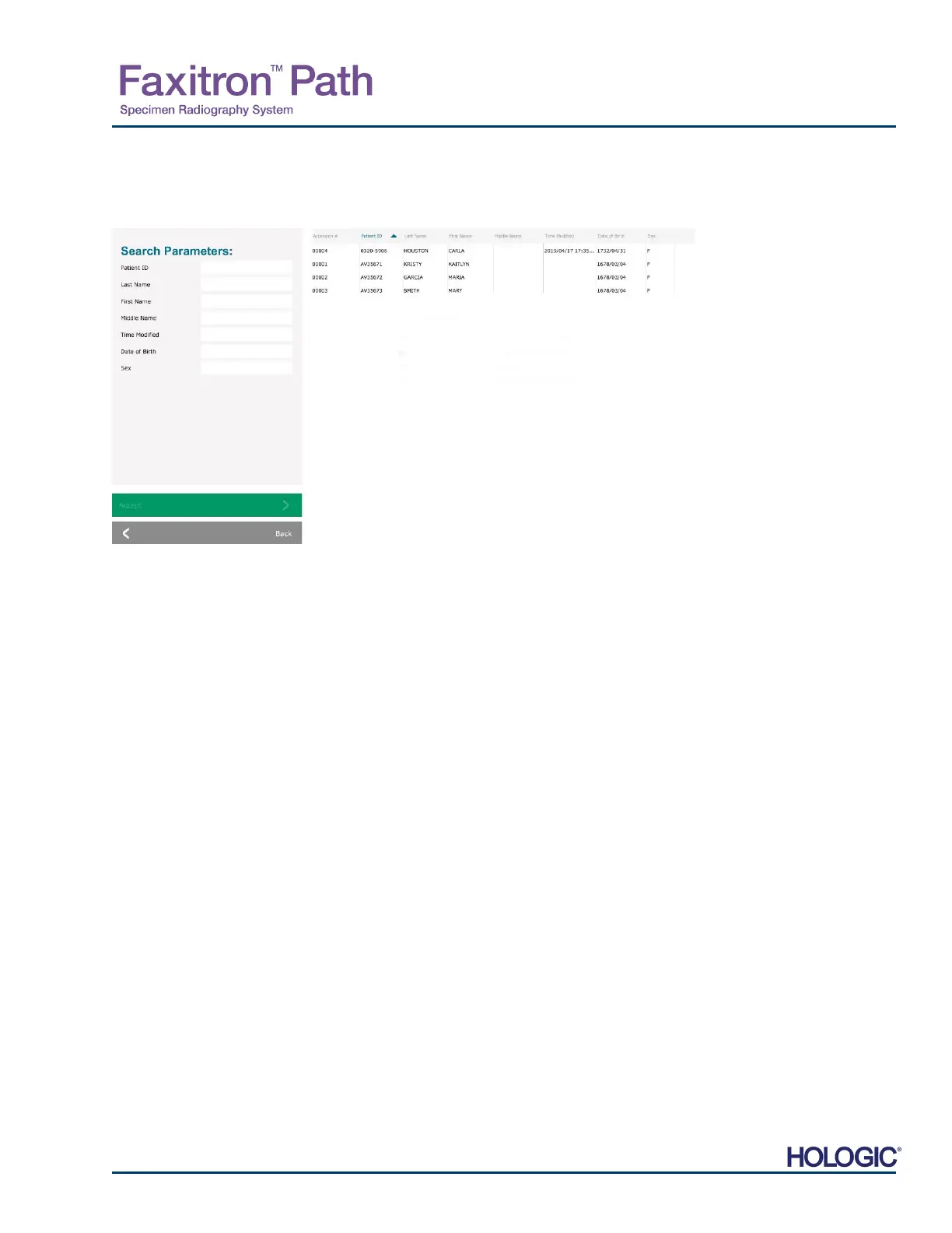 Note: Use the scroll bar at the bottom of the screen to view hidden patient information.