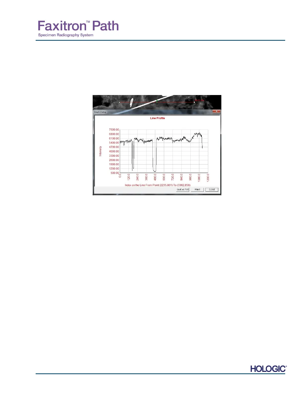 “Line Profile” will display a profile for a user defined line. After selecting “Line Profile” place the