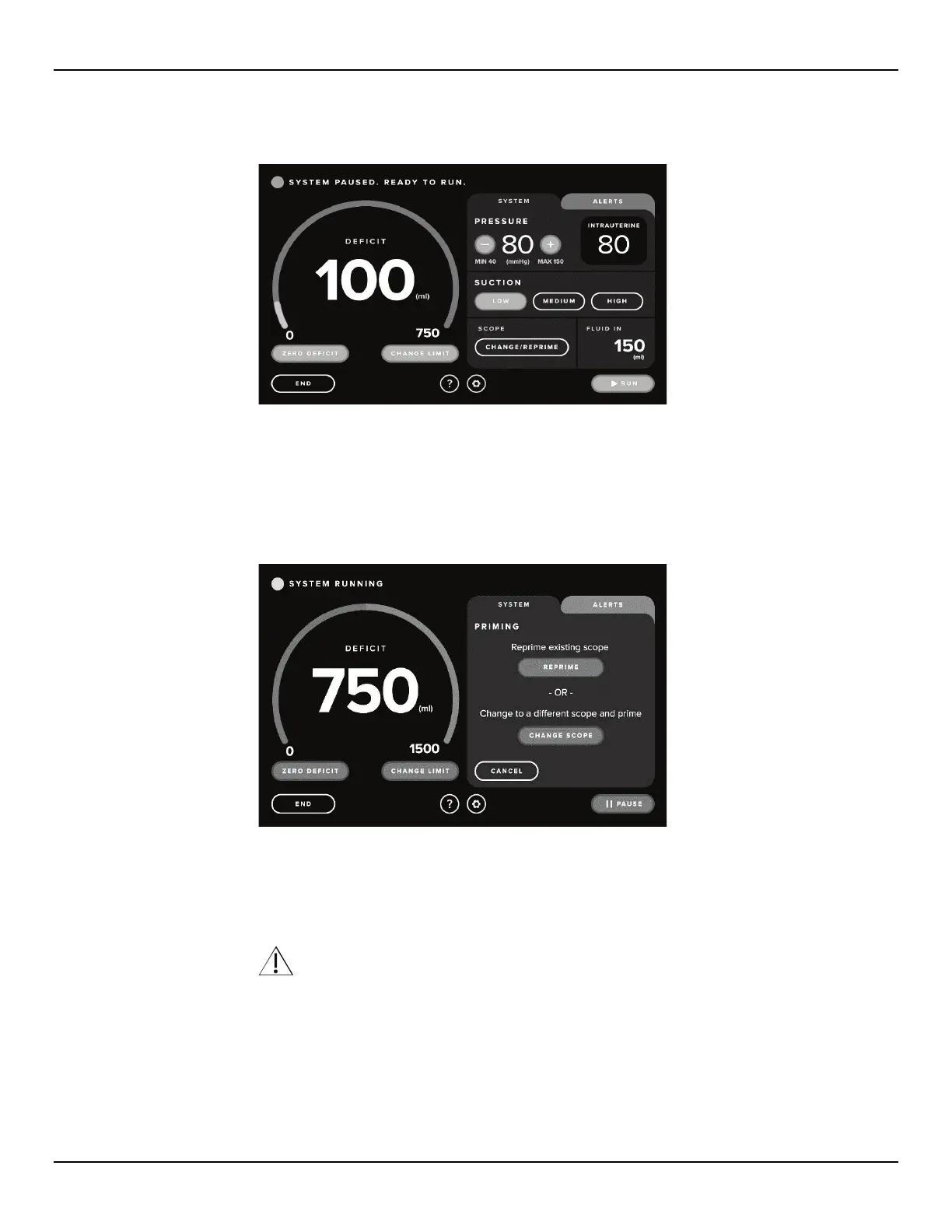 2.7.9.1 Touch the ‘CHANGE/REPRIME’ icon. The system will pause, and the System Tab will display the Reprime and