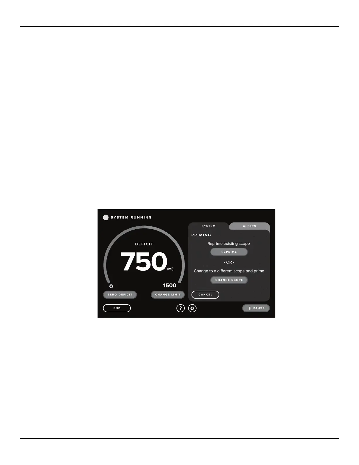 3.5.6.1 Touch the ‘CHANGE/REPRIME’ icon. The system will pause, and the System tab will display the Reprime and