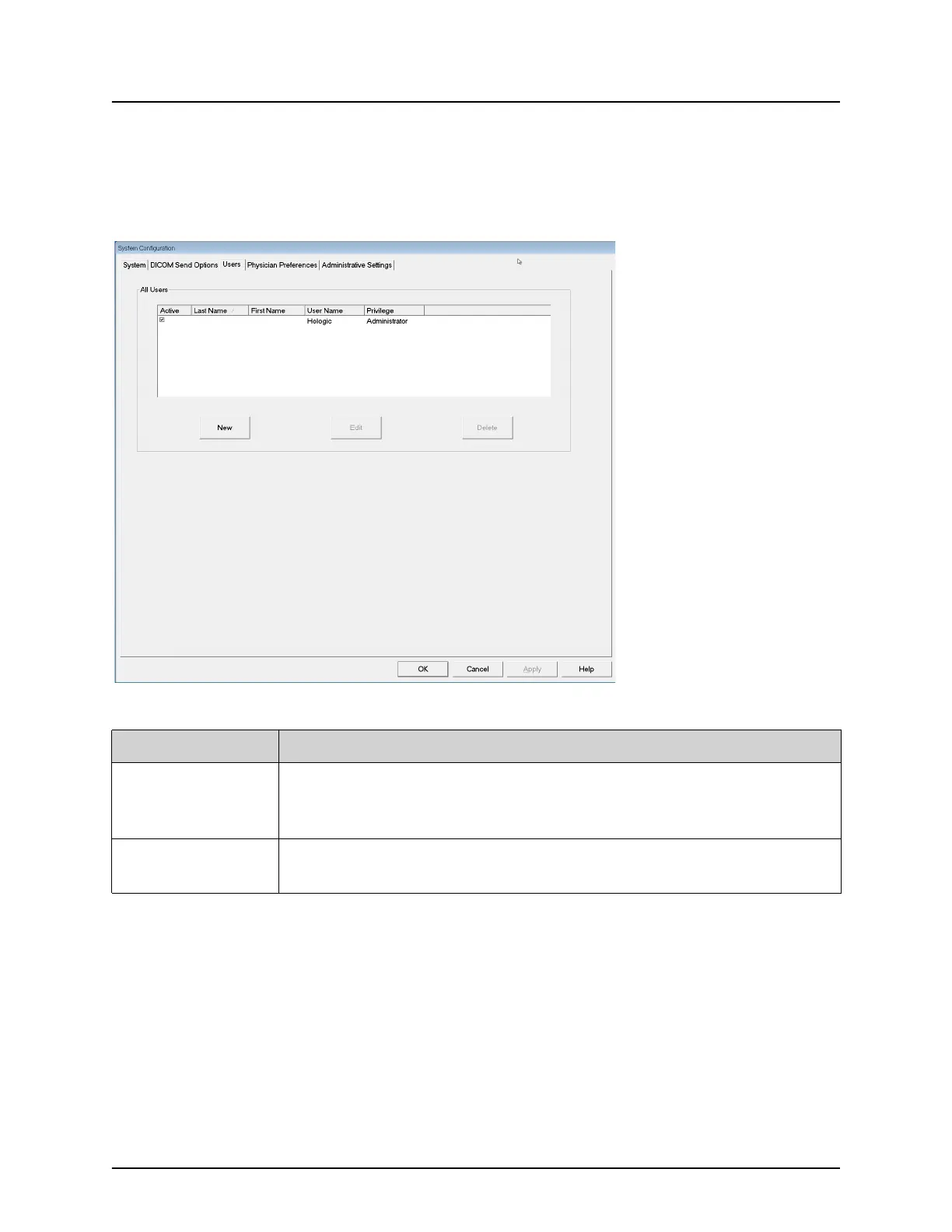 Table 15 Users Page, Section/Field Descriptions
