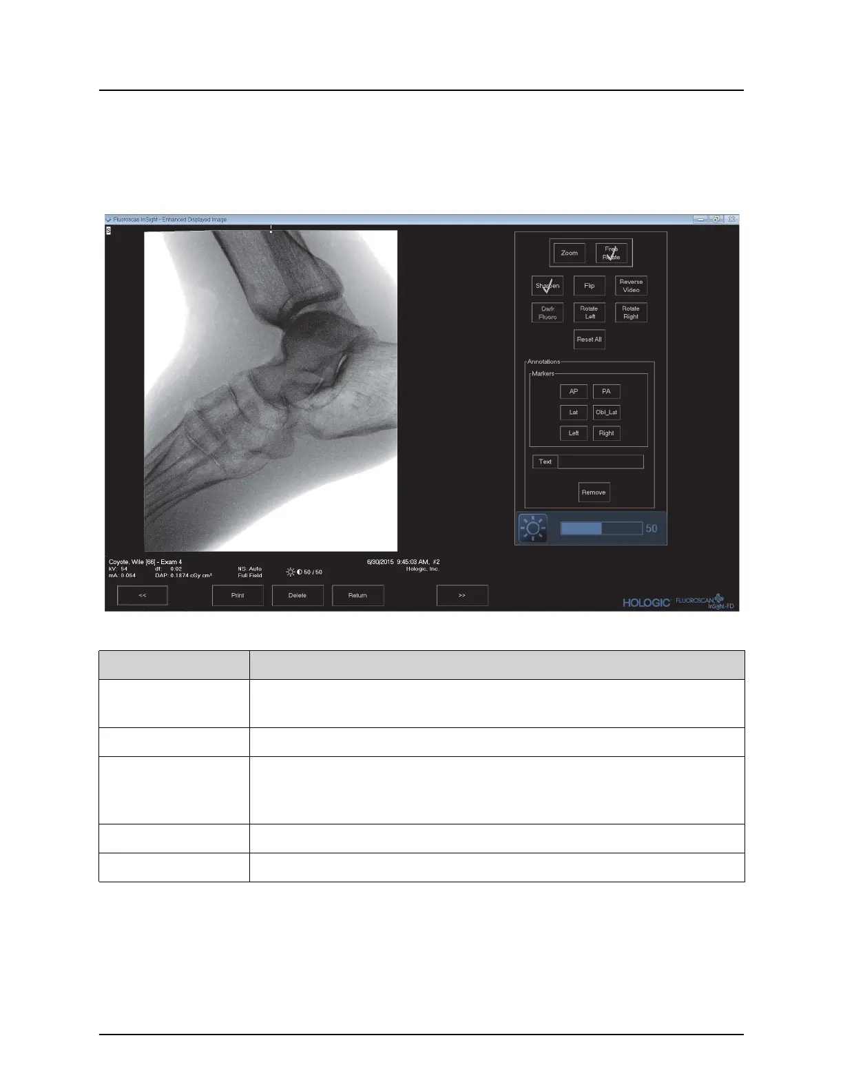 Table 39 Detailed Image Viewing Screen, Button Functions