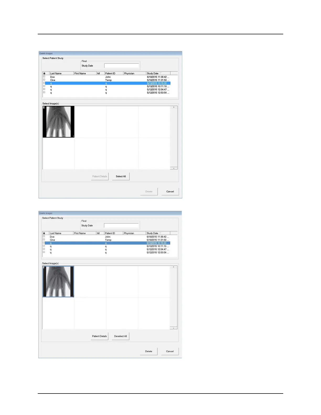 Hologic Fluoroscan Insight FD - Figure 43 Patient Selected; Figure 44 Image Selected for Deletion