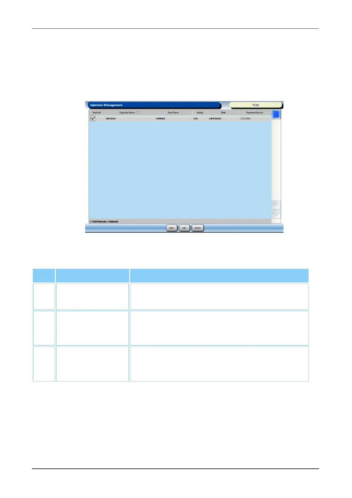 Refer to the Operator Management screen to add, delete, and edit operator account