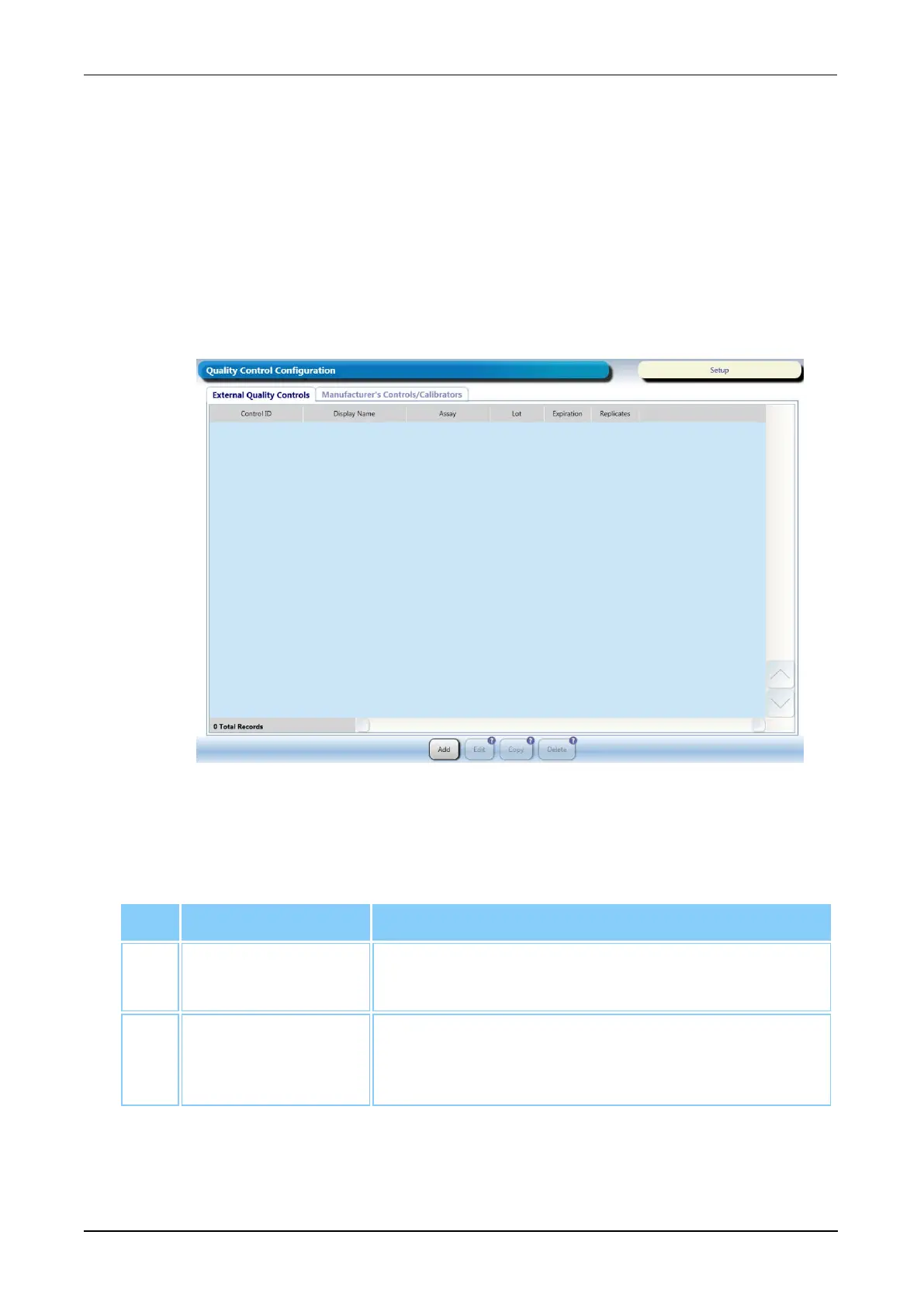Use the Quality Control Configuration screen to add or delete external quality controls