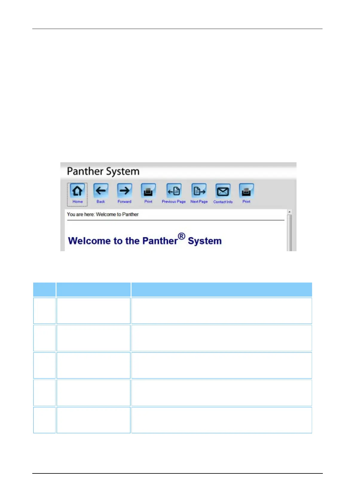 Select the Help button to access the section of the Panther System Operator’s Manual