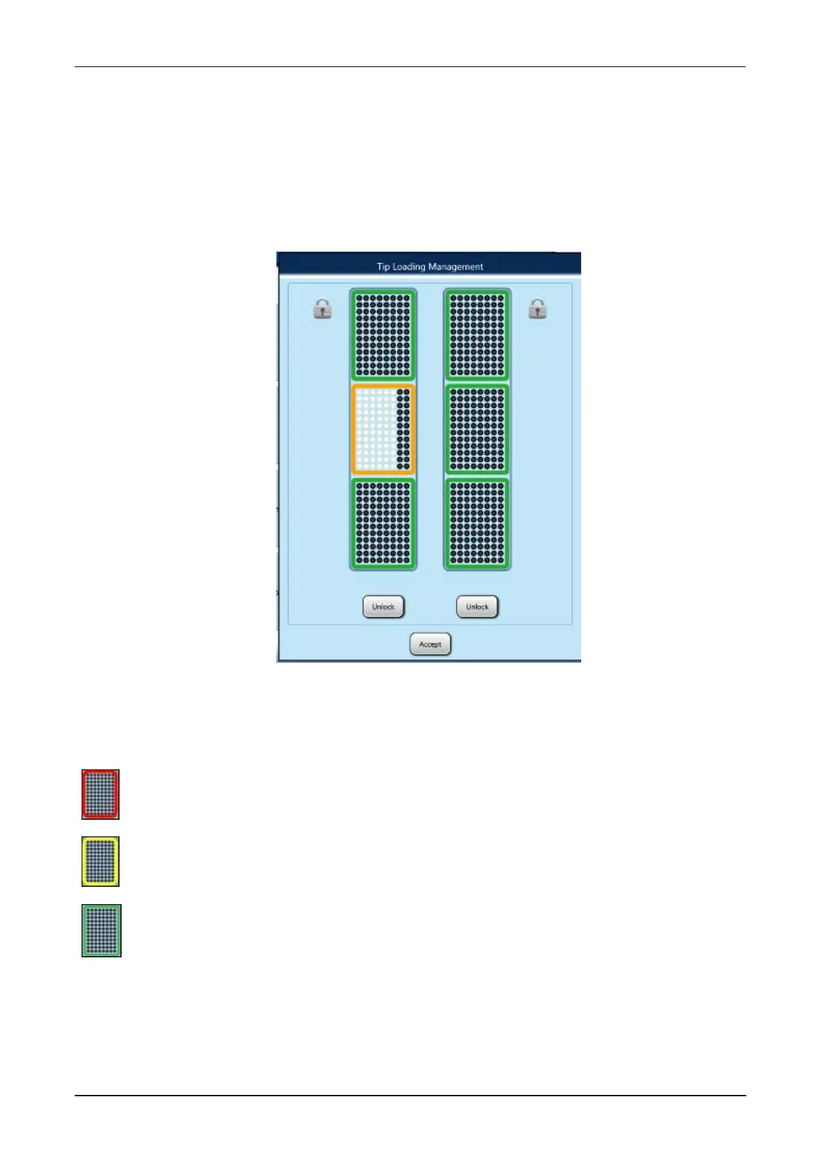 Each tip tray icon will be outlined in one of the following three (3) colors indicating
