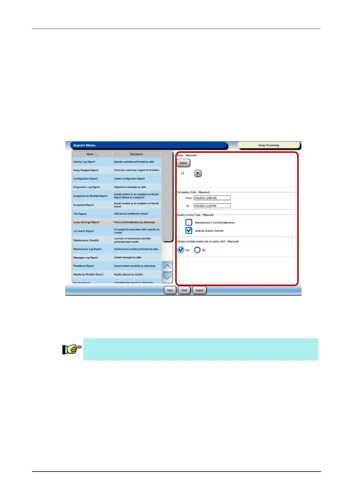 3. Select or complete the information fields as necessary for the report type.