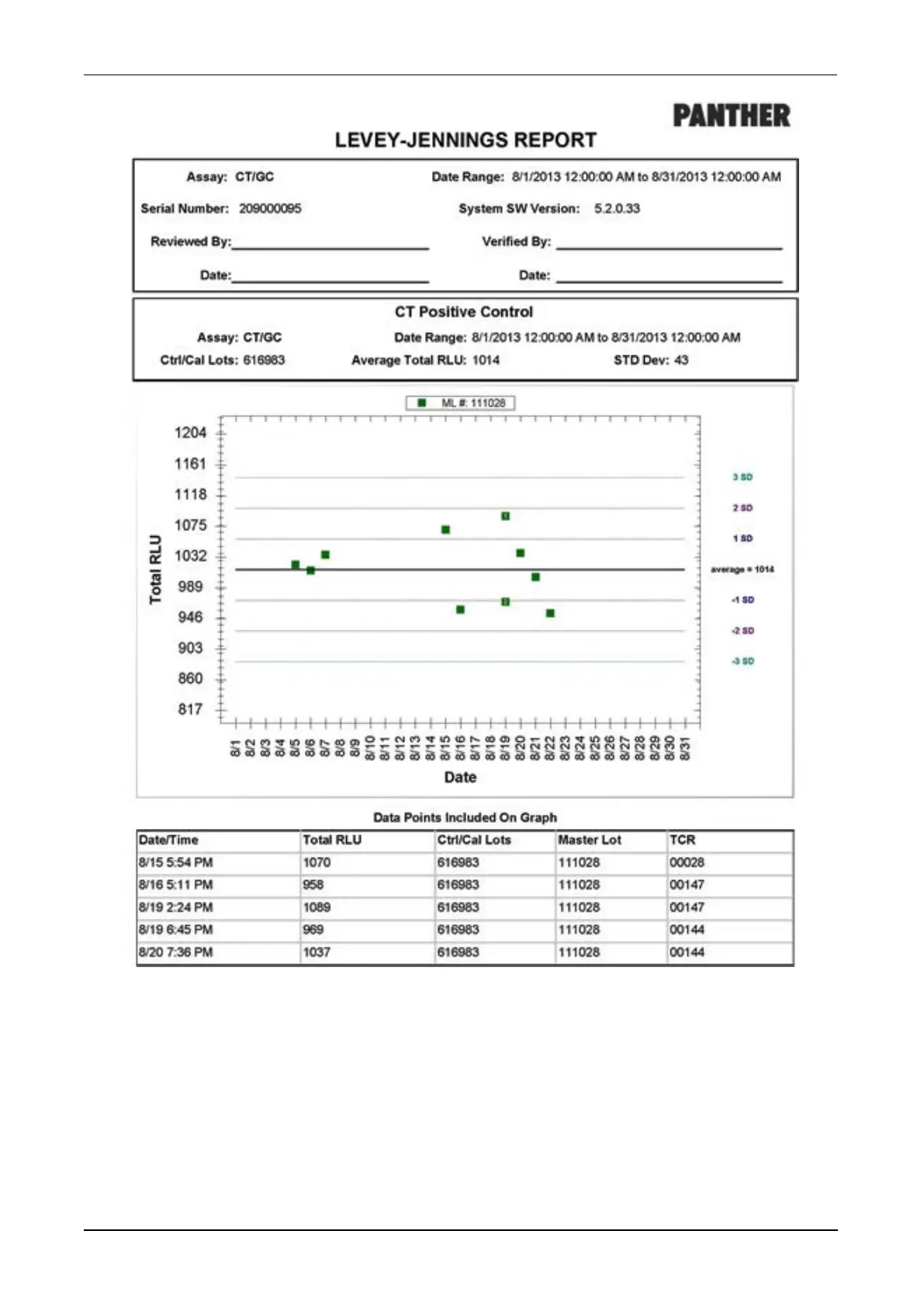 Hologic Panther System - Lot Search Report; Figure 89. Levey-Jennings Report (Example)