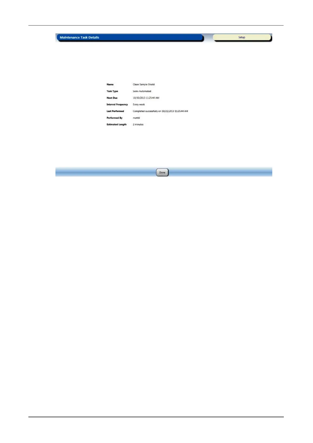 Figure 102. Maintenance Task Details Screen—Clean Sample Shield (Example)
