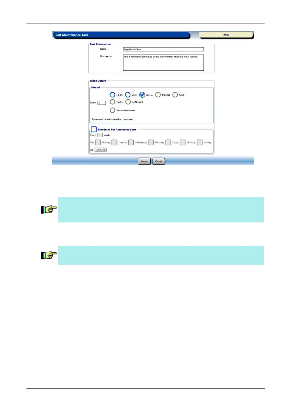 Note—The interval for the Replace Mag Wash Cleaning solution task is