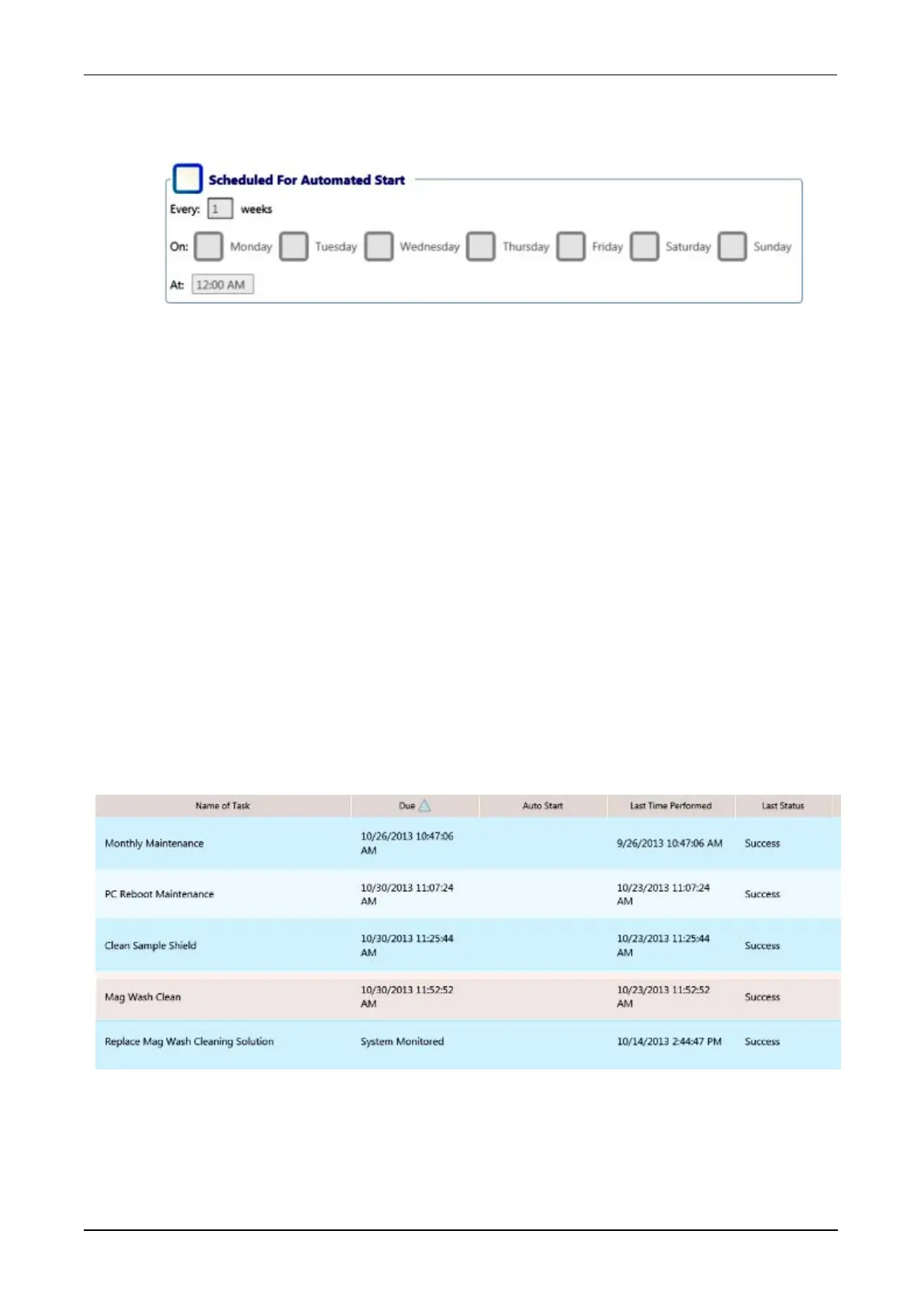 The Auto Start column applies to maintenance tasks that have been scheduled to