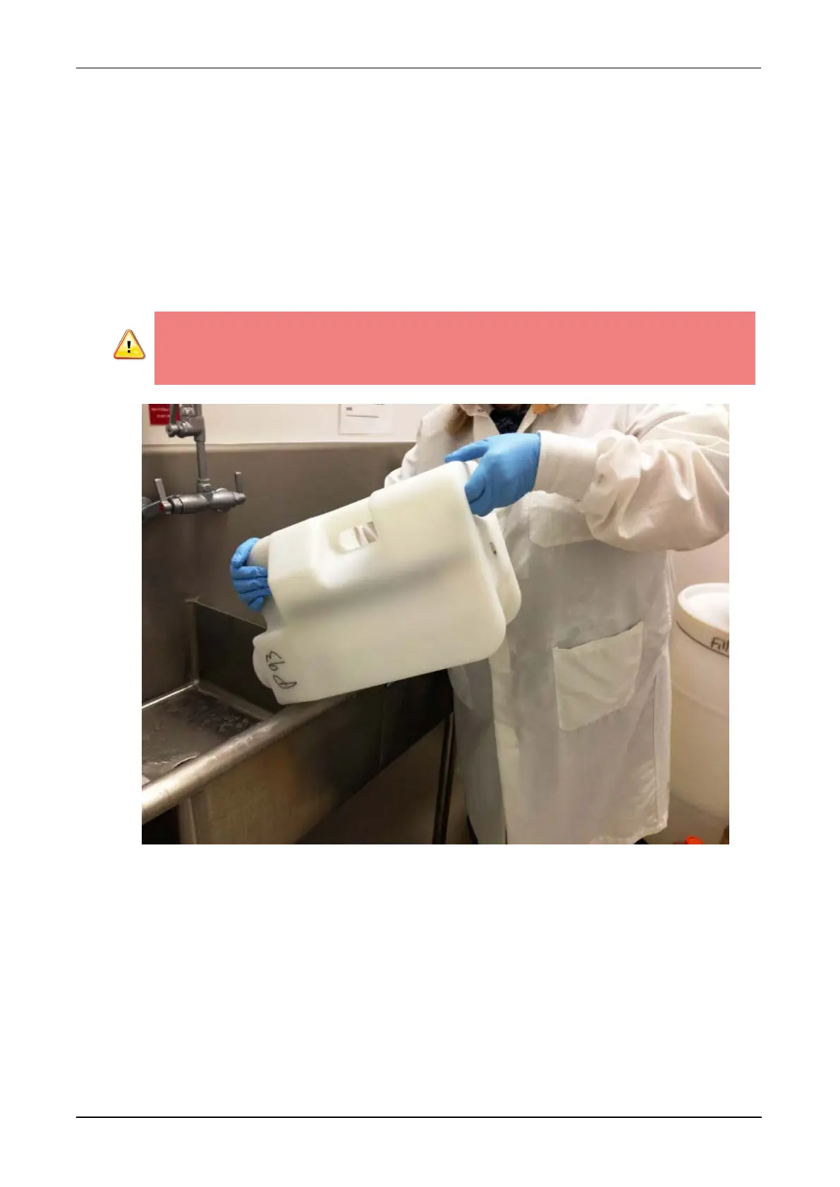13. Add approximately 2 L of 2.5%–3.5% sodium hypochlorite solution and then re-