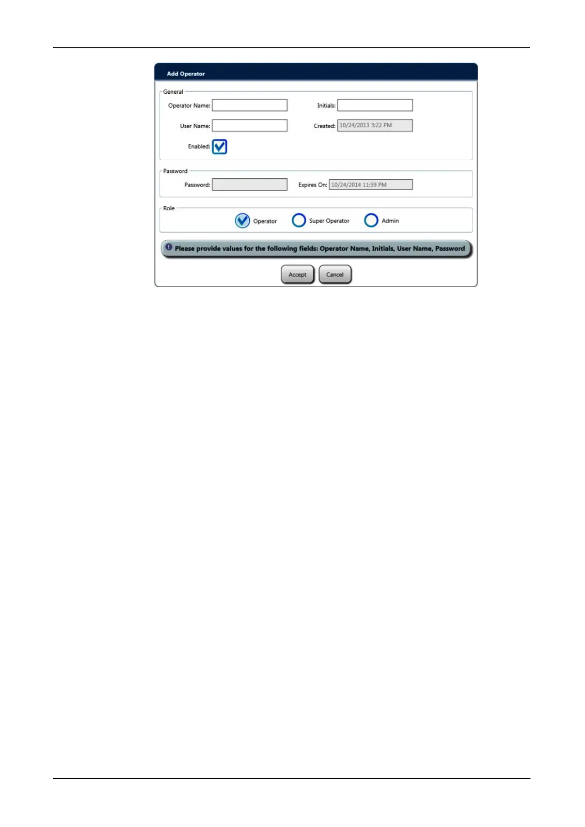 Figure 112. Add Operator Window (Example)