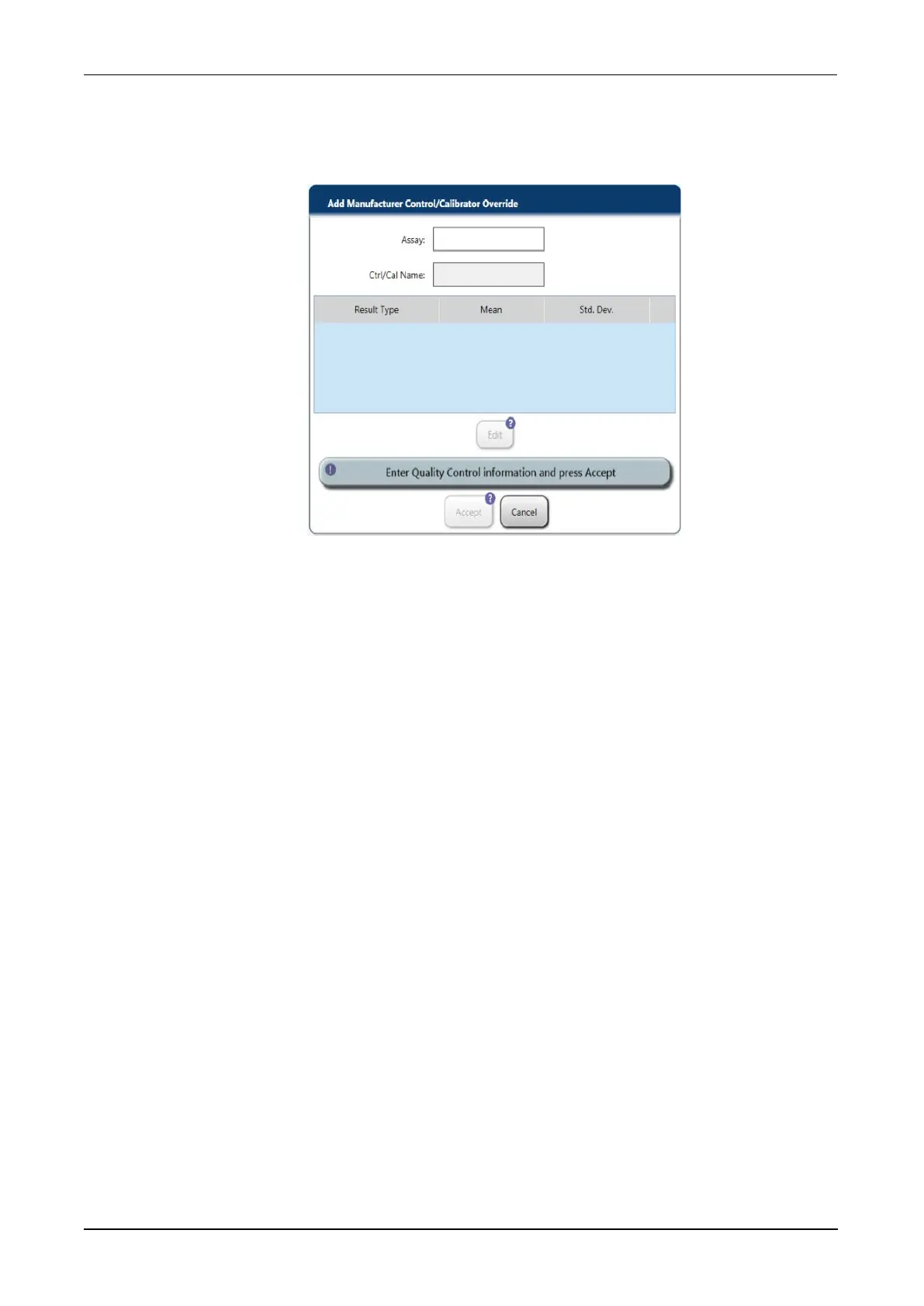 chosen manufacturer control or calibrator and return to the Add Manufacturer