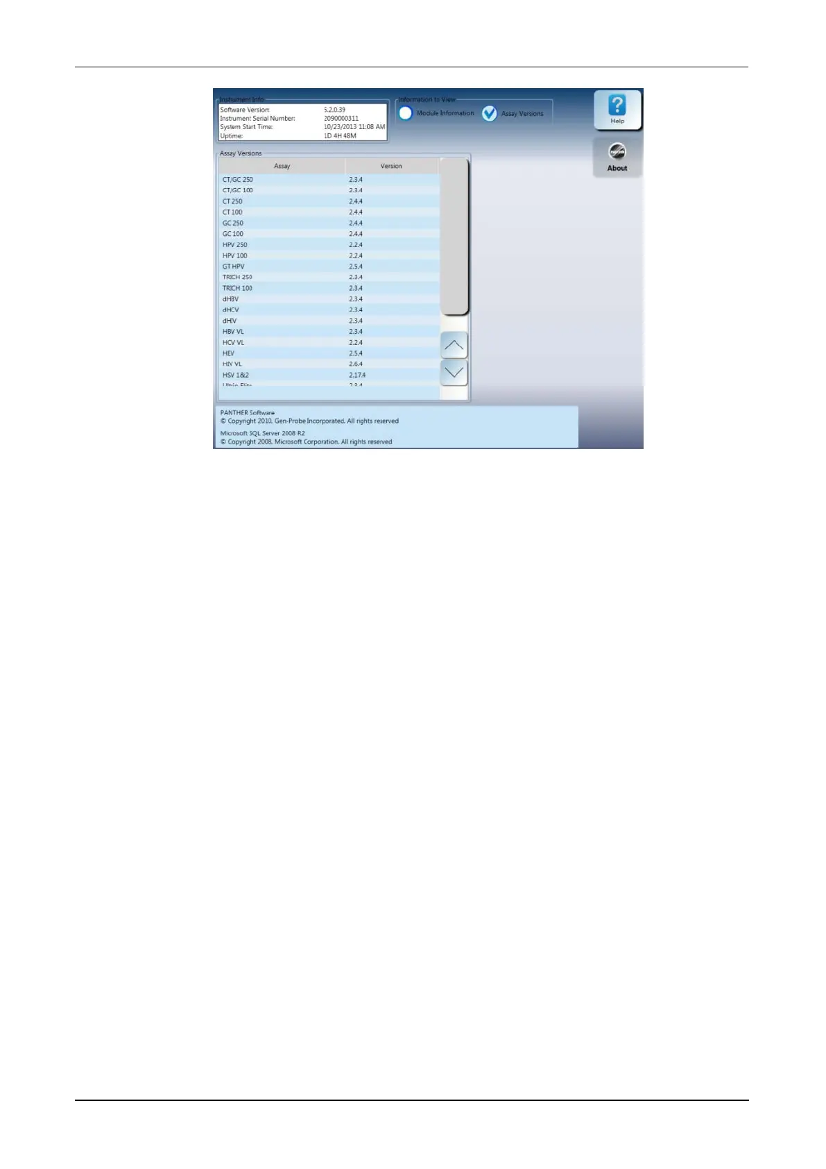 Figure 122. Instrument Info Window—Assay Versions View (Example)