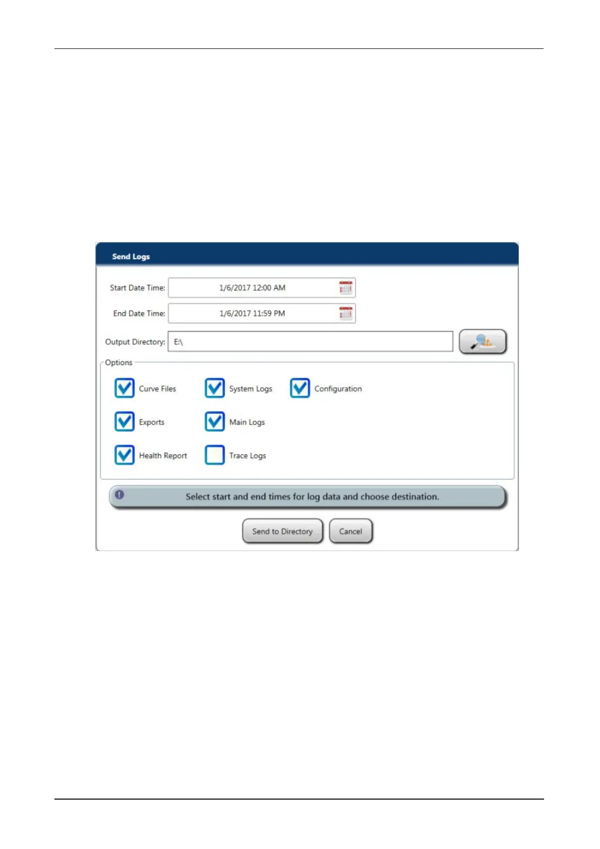 Figure 123. Send Logs Window (Example)