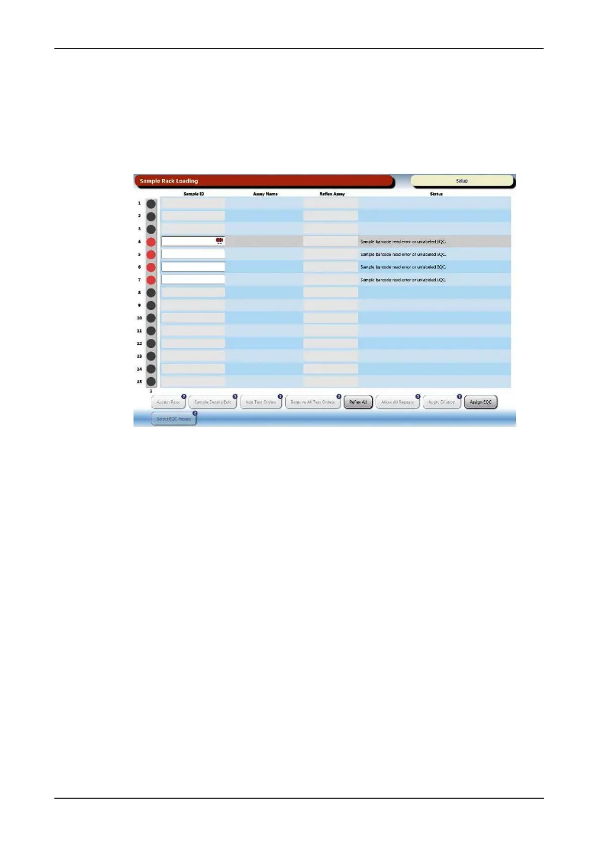 Figure 125. Sample Rack Loading Screen During Barcode Error (Example)