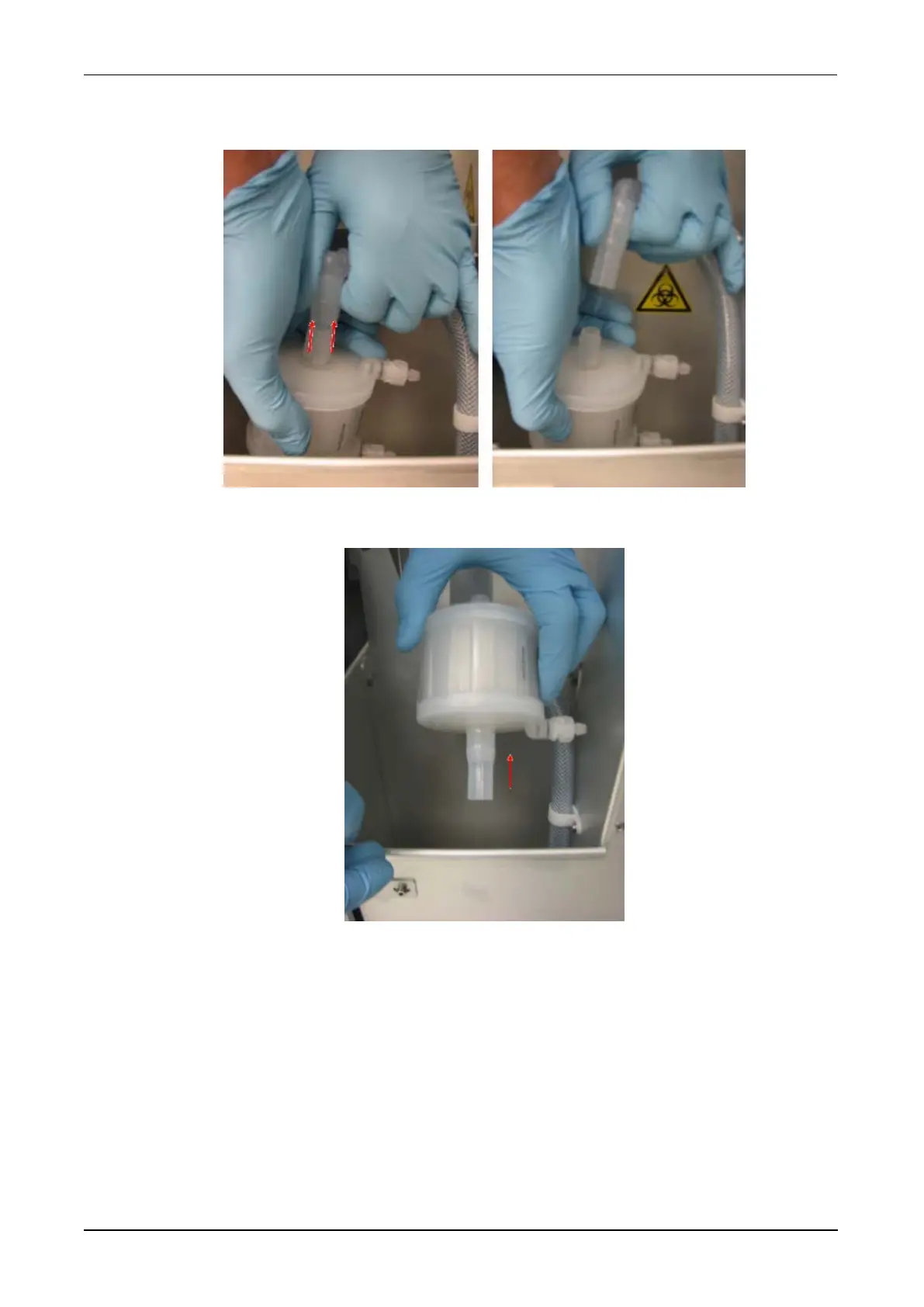 5. Remove the clear rubber tubing from the bottom of the Vacuum Trap Filter. Insert