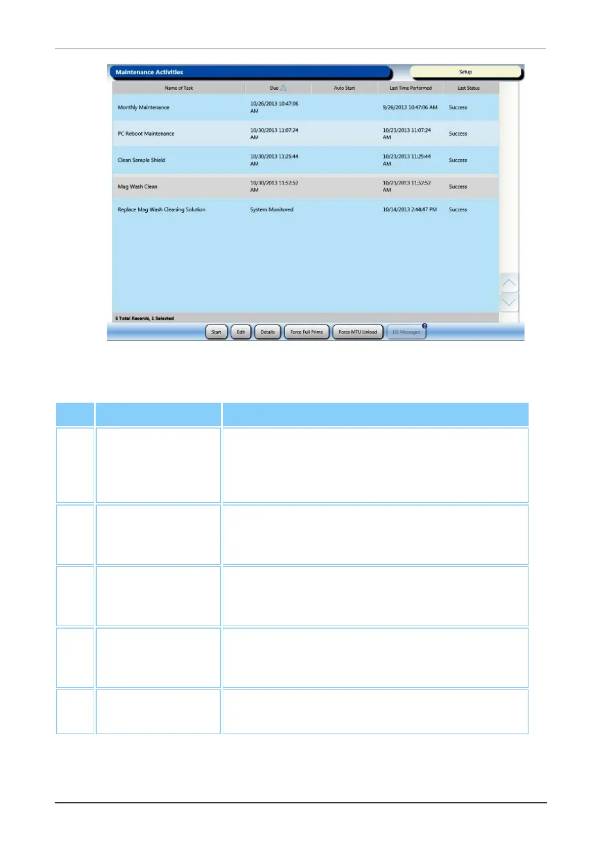 Table 33. Maintenance Activities Screen Descriptions