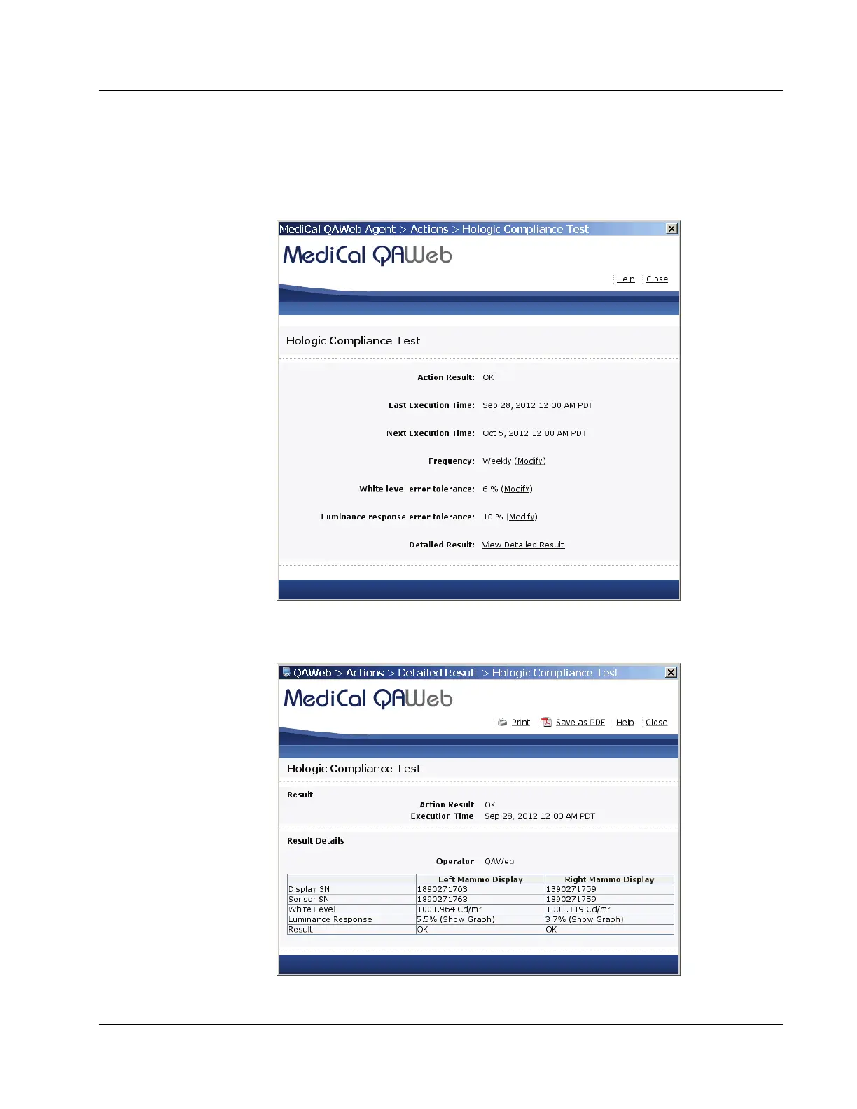 Figure 12: Hologic Compliance Test – View Detailed Result Window
