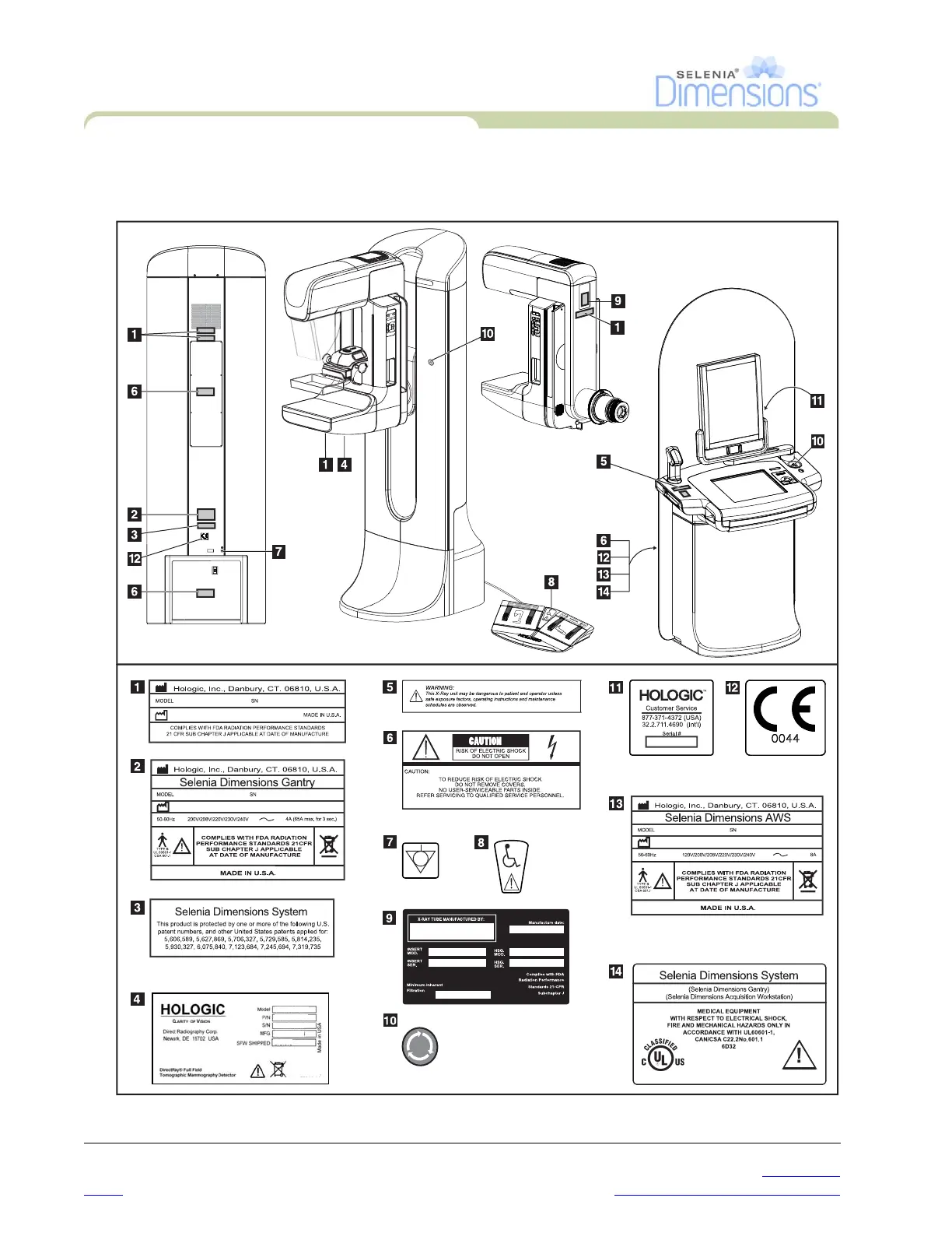 Hologic selenia dimensions - Label Locations; Figure 1-2: Label Locations