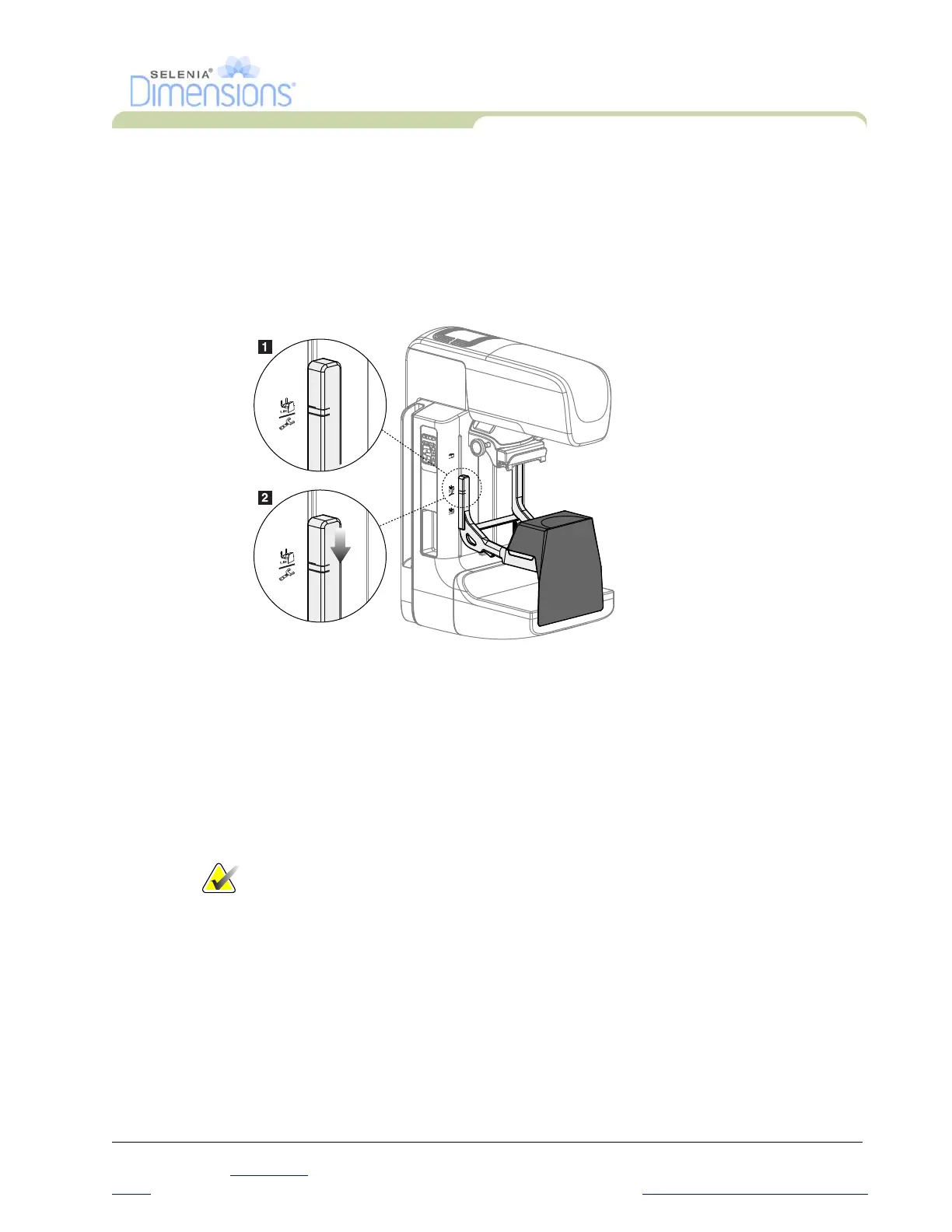 The Selenia Dimensions Magnification Stand has a breast platform and an abdominal shield.