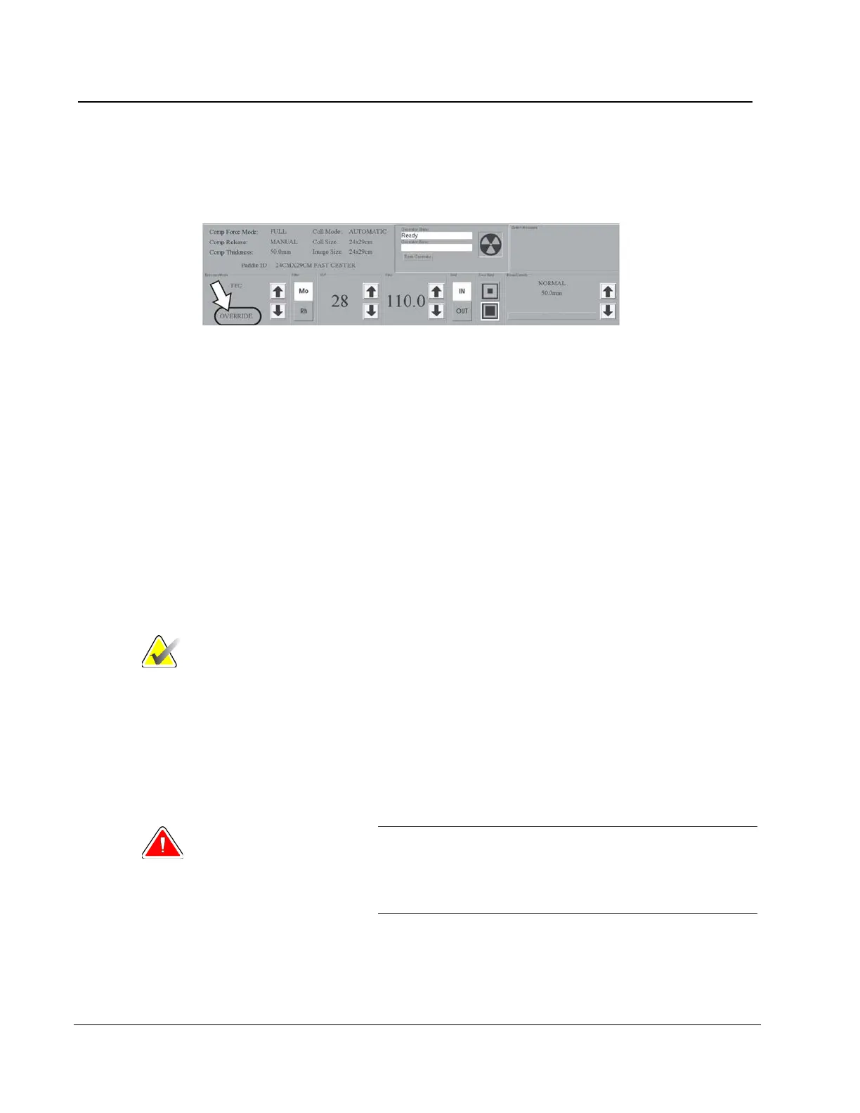 If you change one or more of the parameters (kV, mAs, or filter), the system enters the