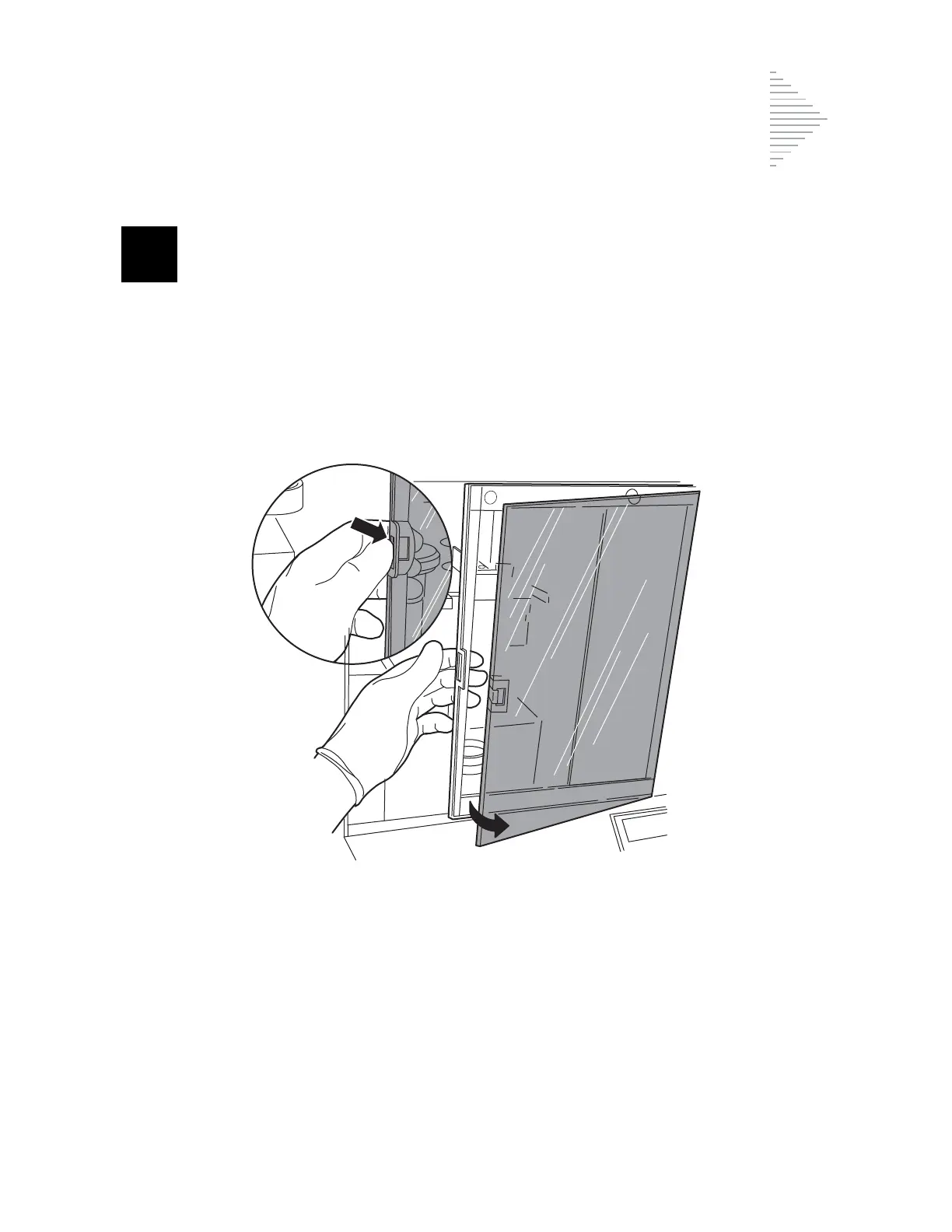 door open approximately three inches. With your left thumb, release the tab on the open edge of